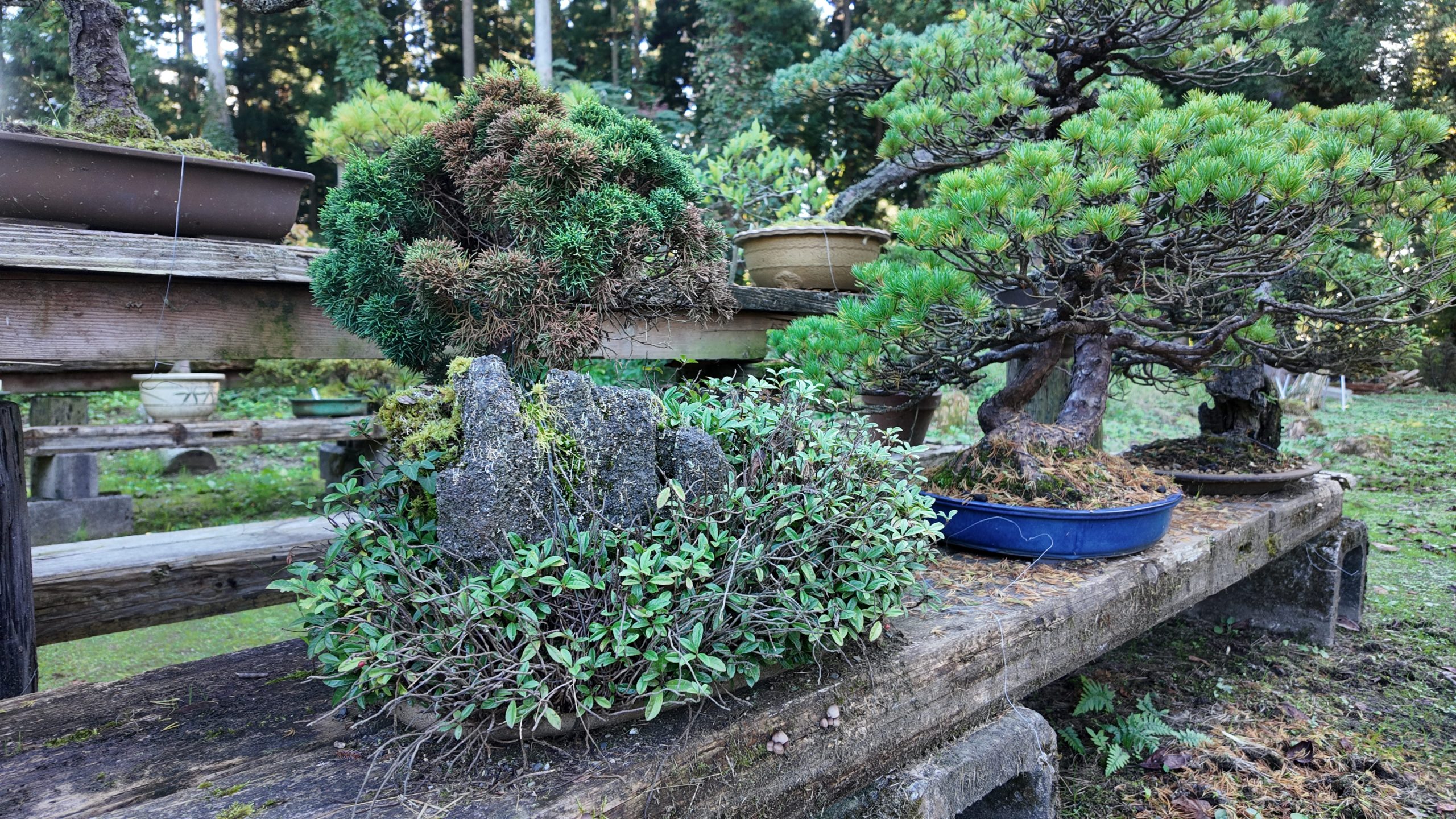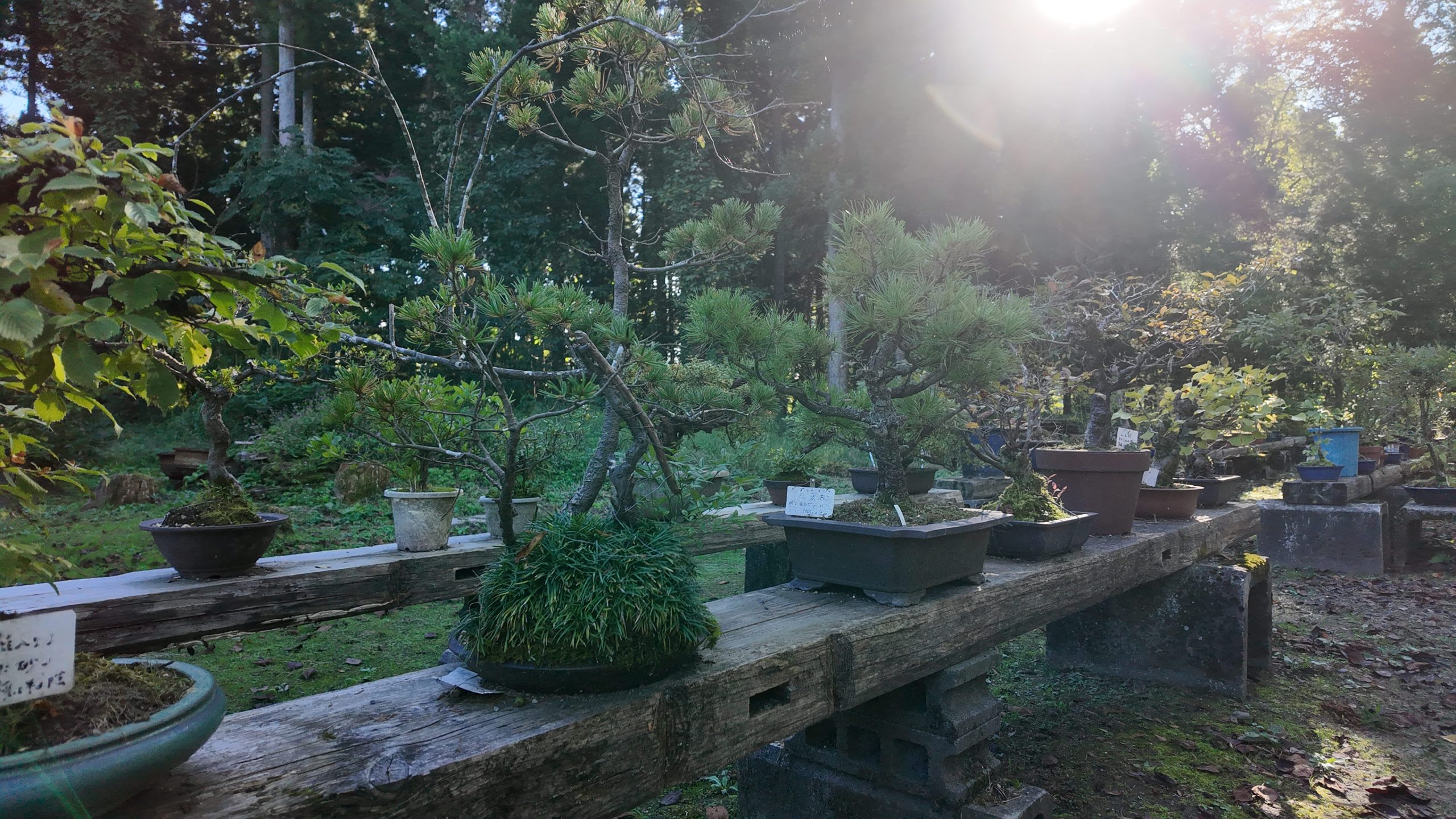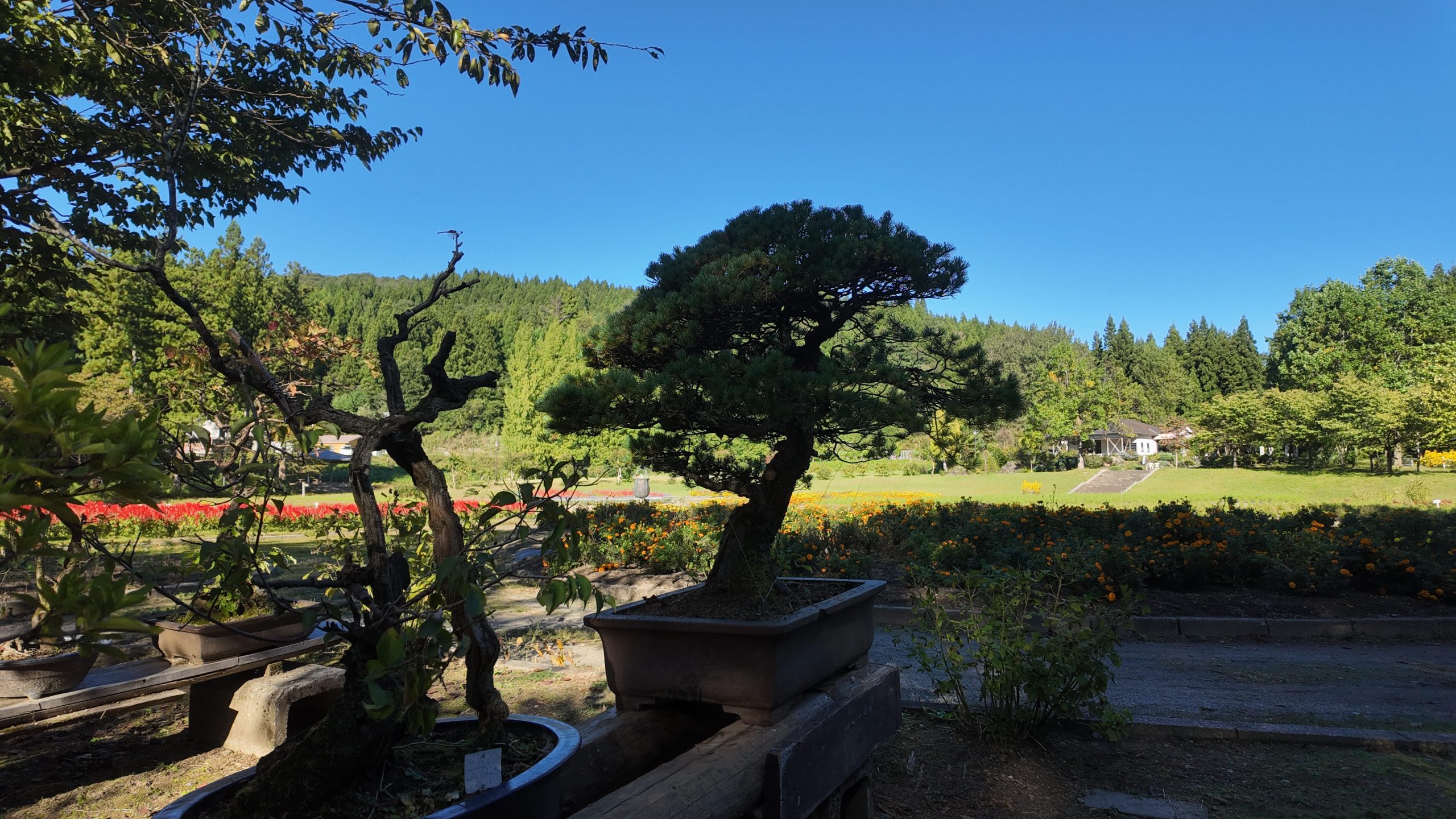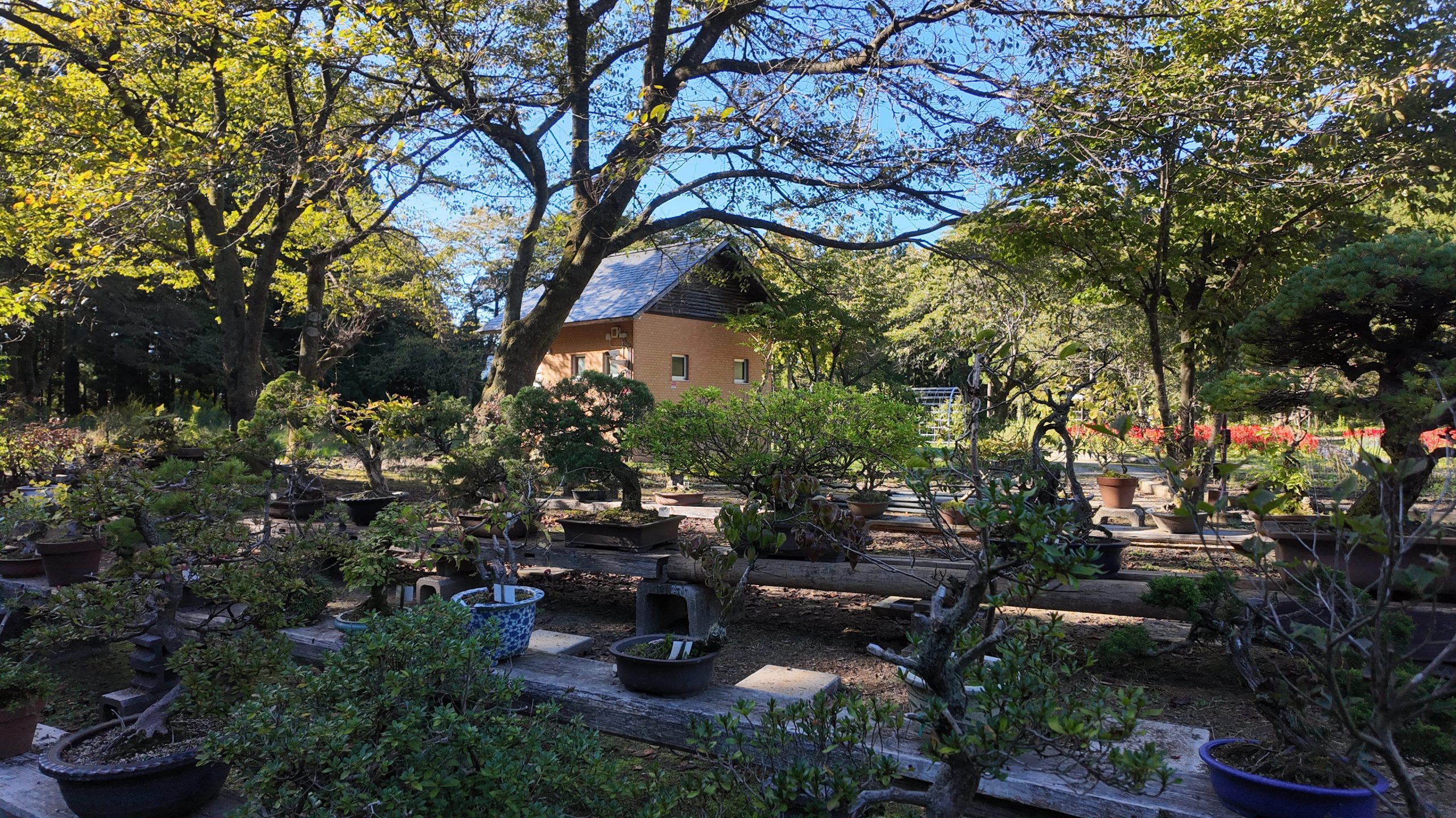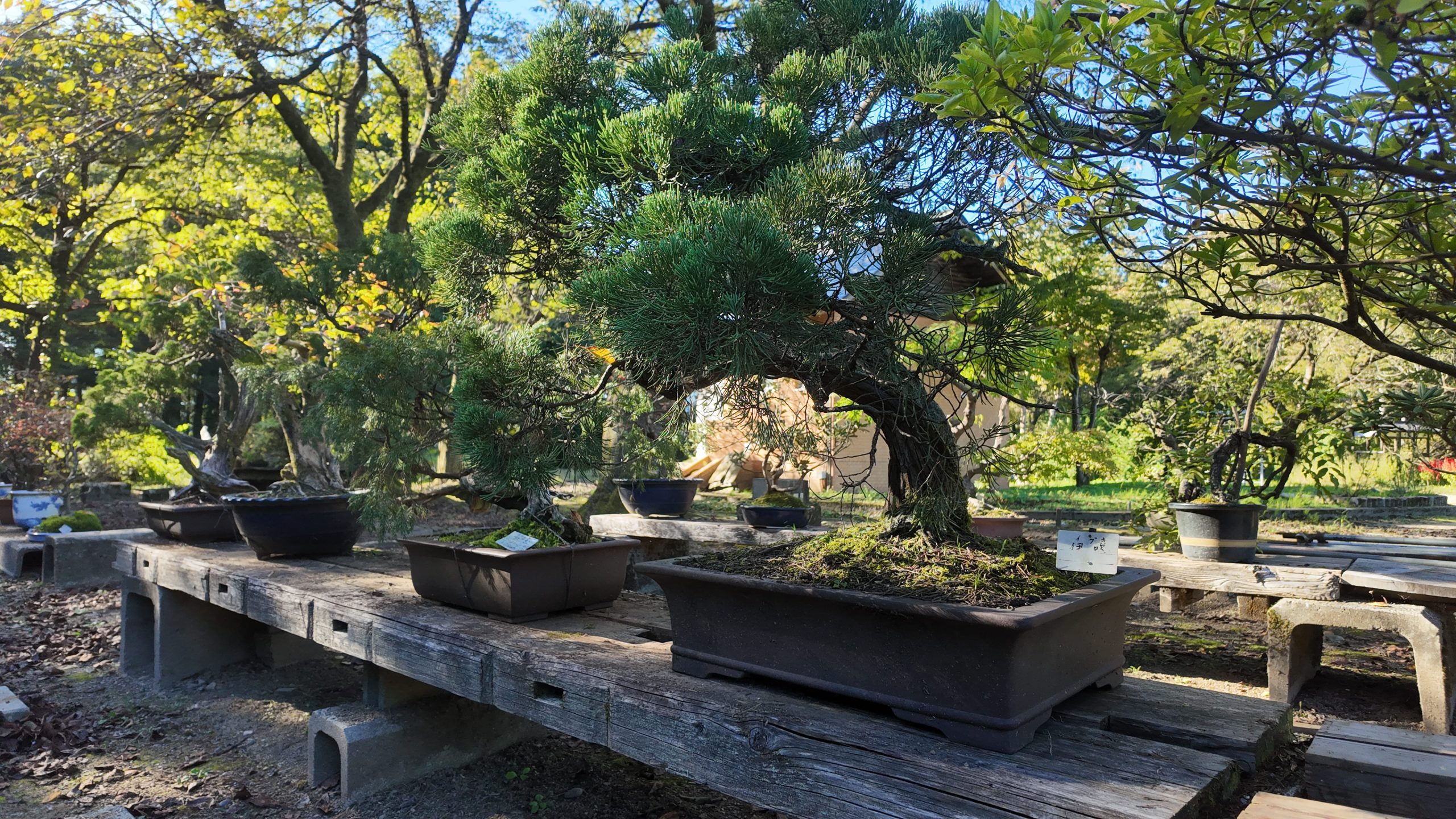 こちらは園内にある孝樹園。盆栽が綺麗に陳列されていました。