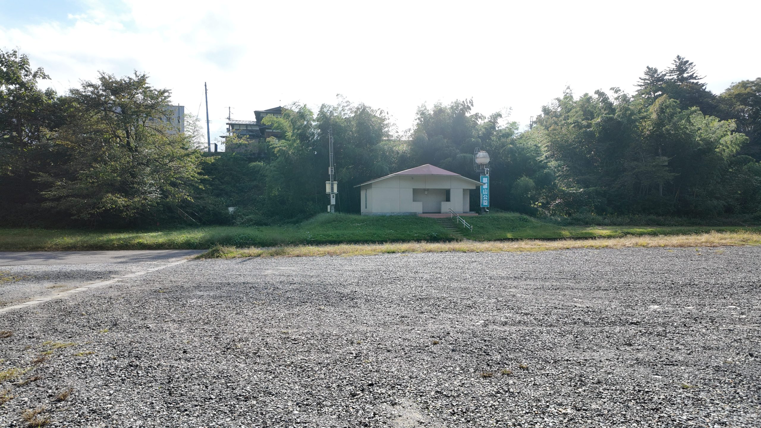 遊具なし。お手洗いあり。歩道は砂利多め。