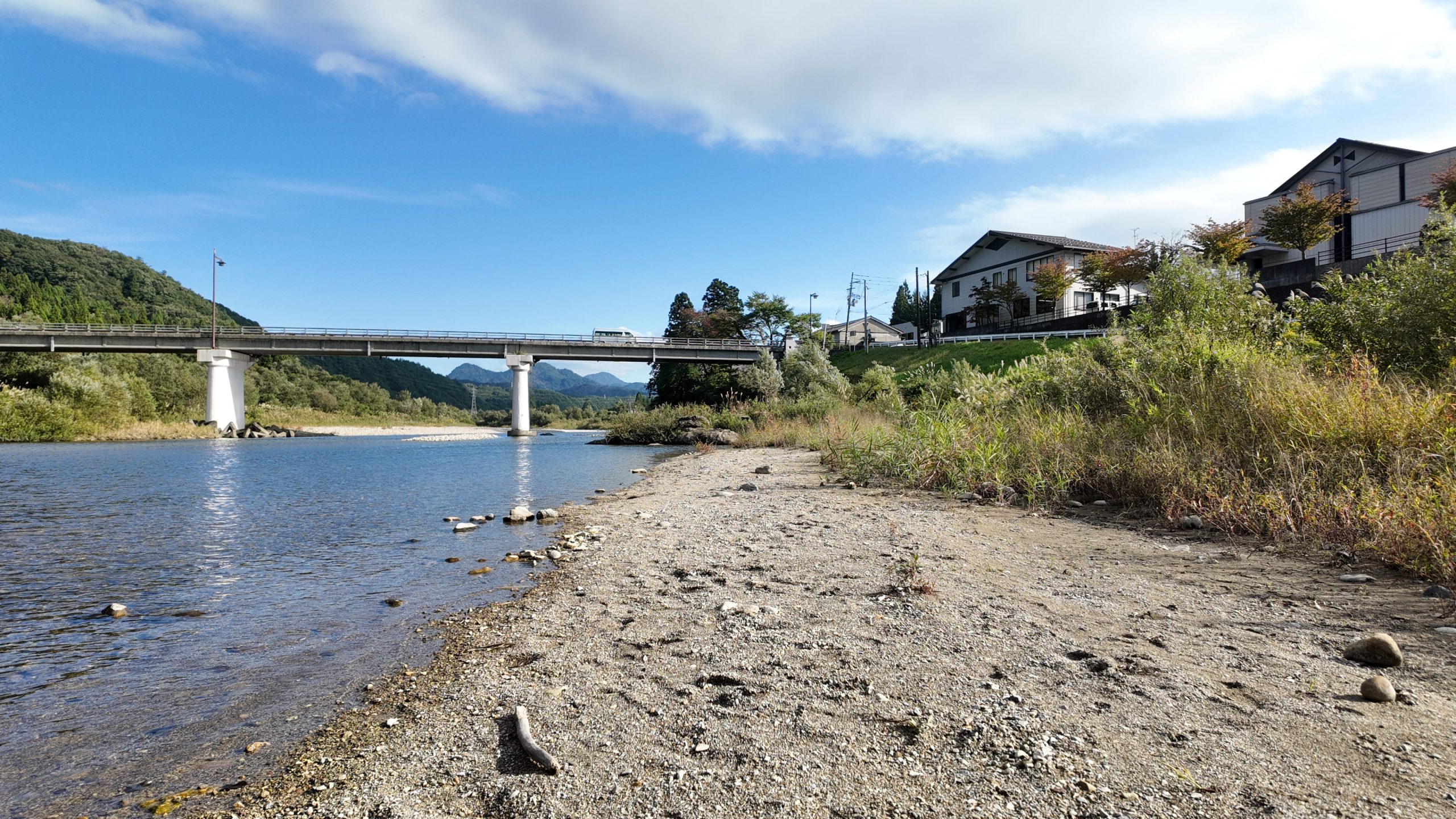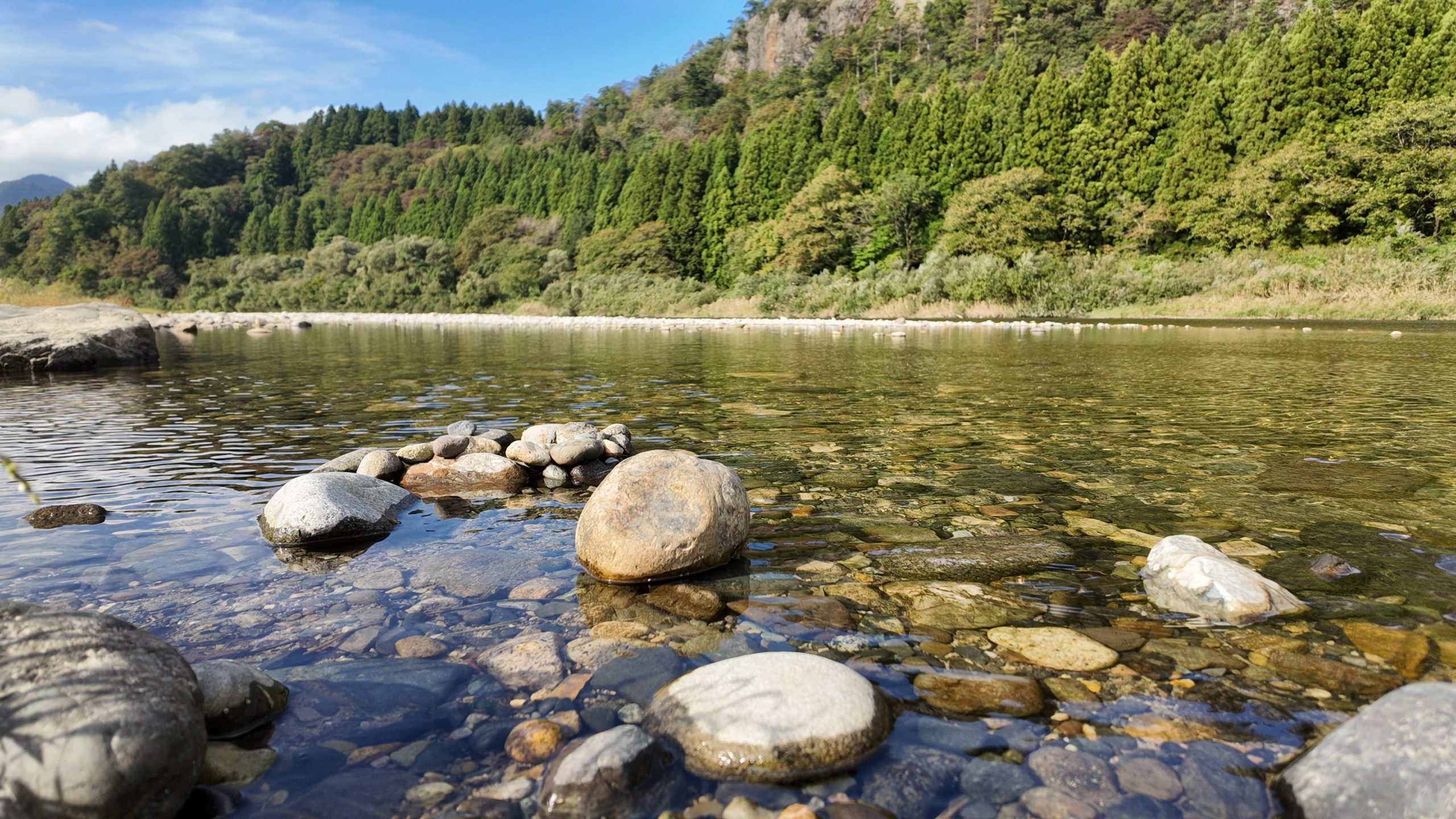 川の水も麒麟山の景観もキレイでリラックスすることができました。