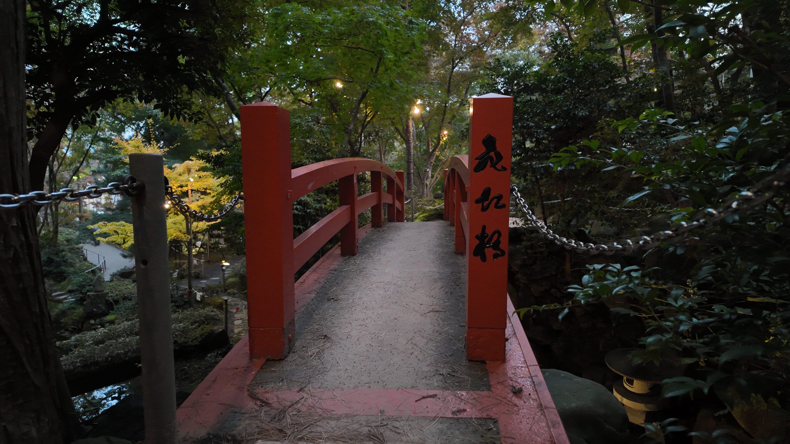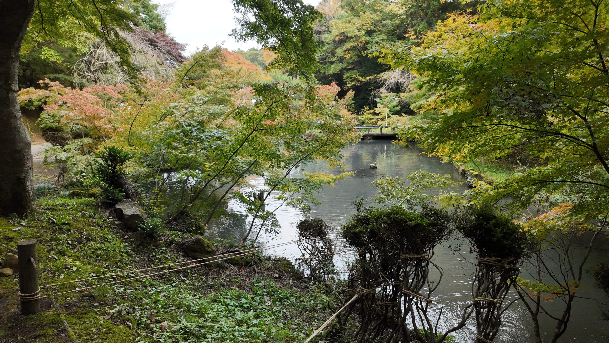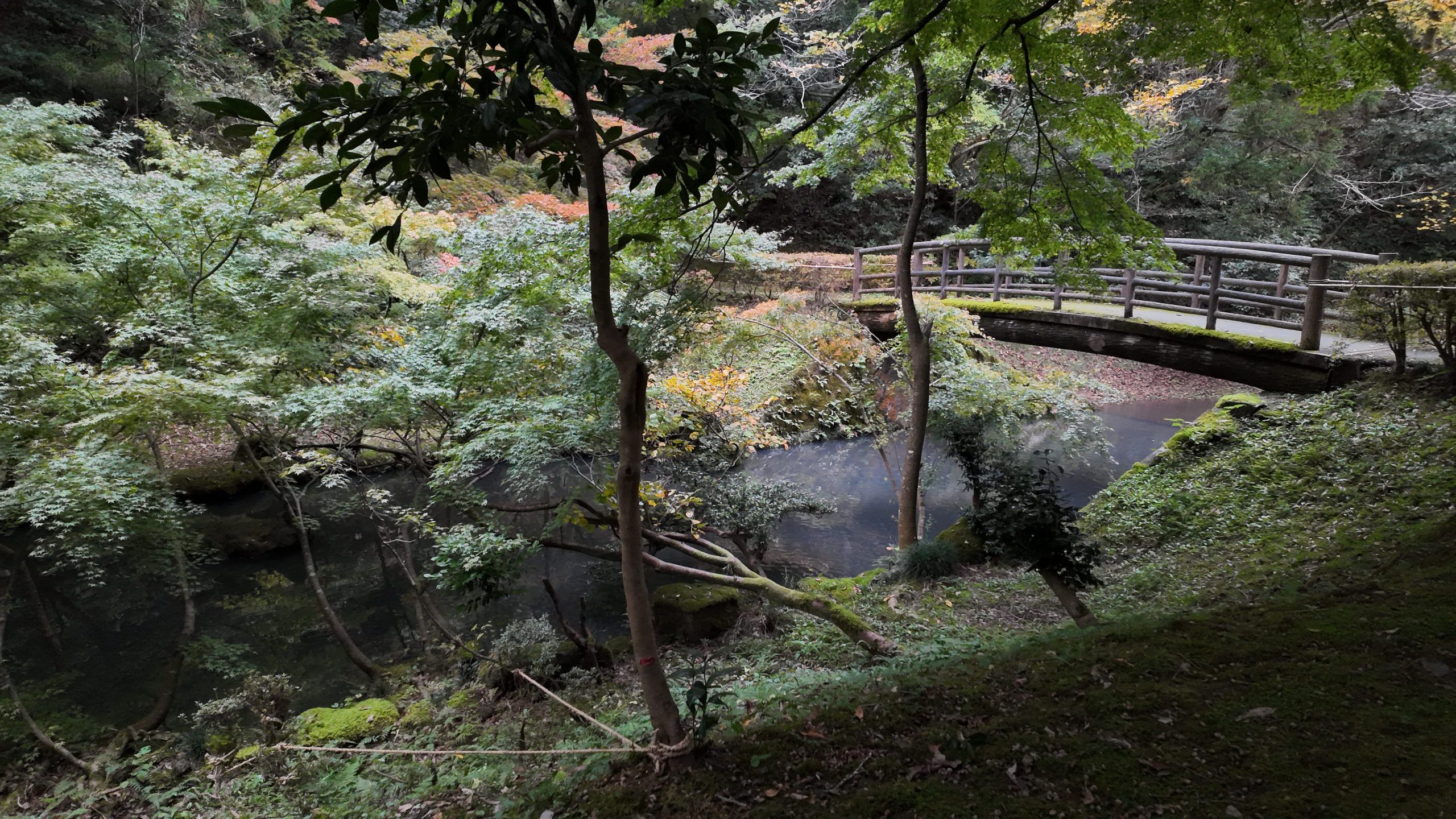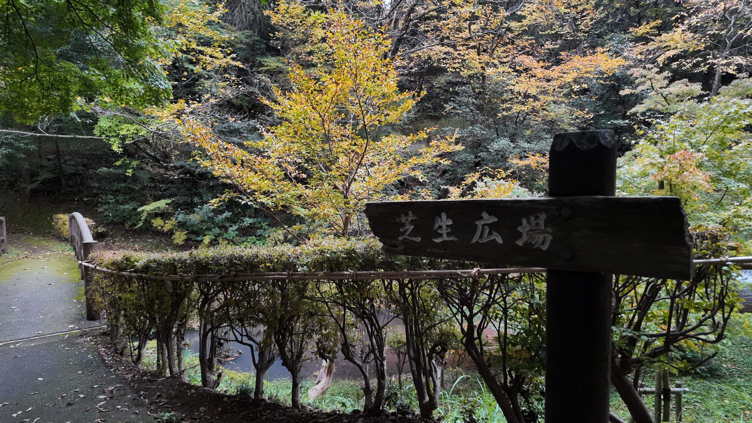 池や紅葉を見ながら道なりに進むと左側に太鼓橋がありました。
