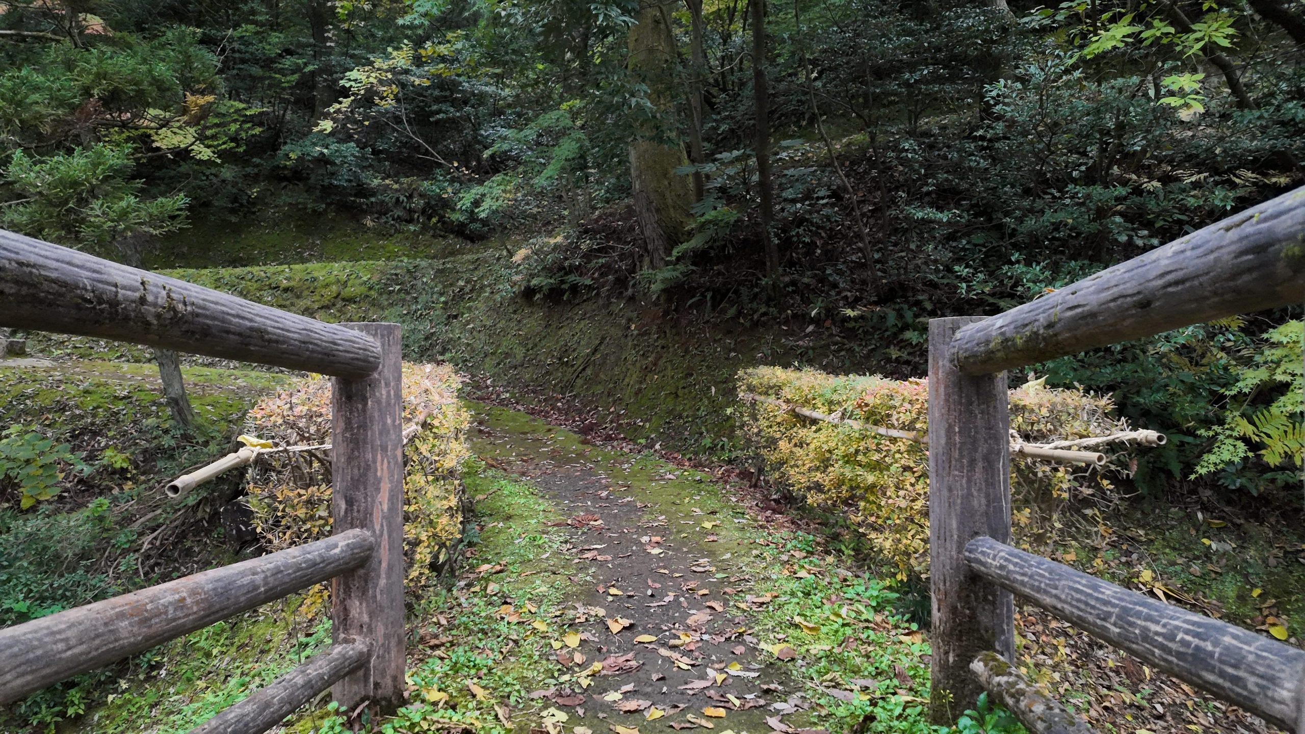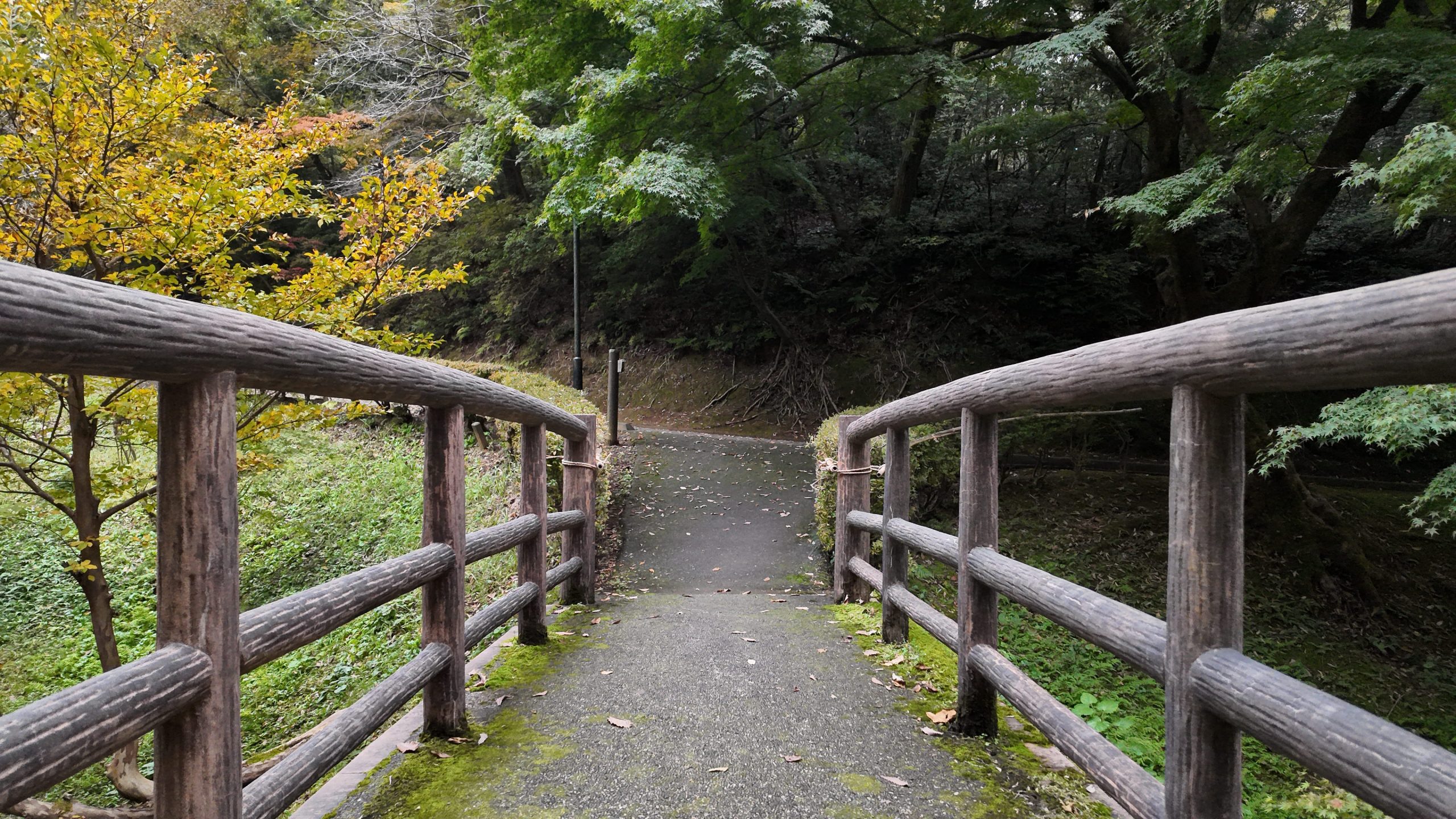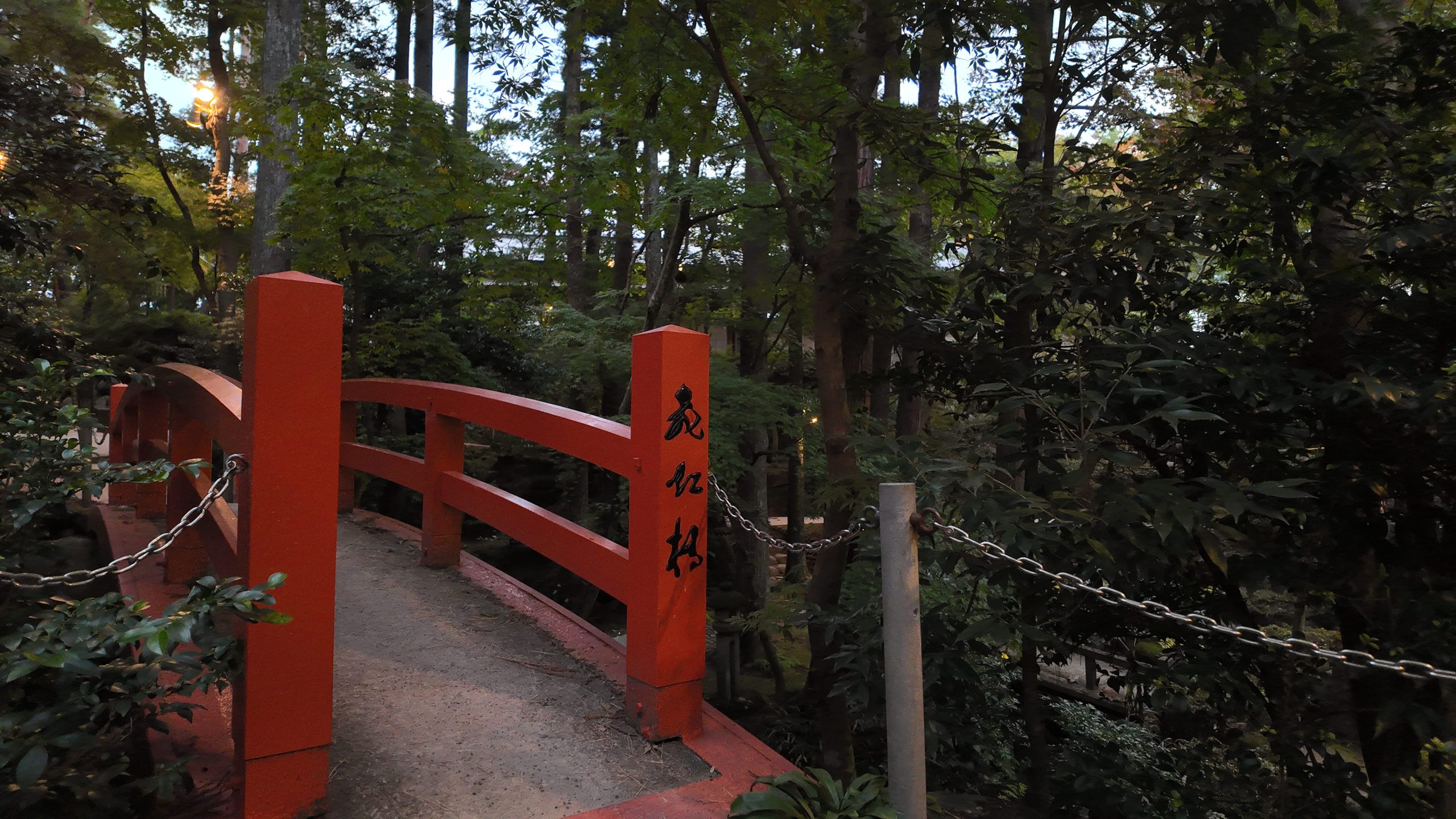 池や紅葉を見ながら道なりに進むと左側に太鼓橋がありました。