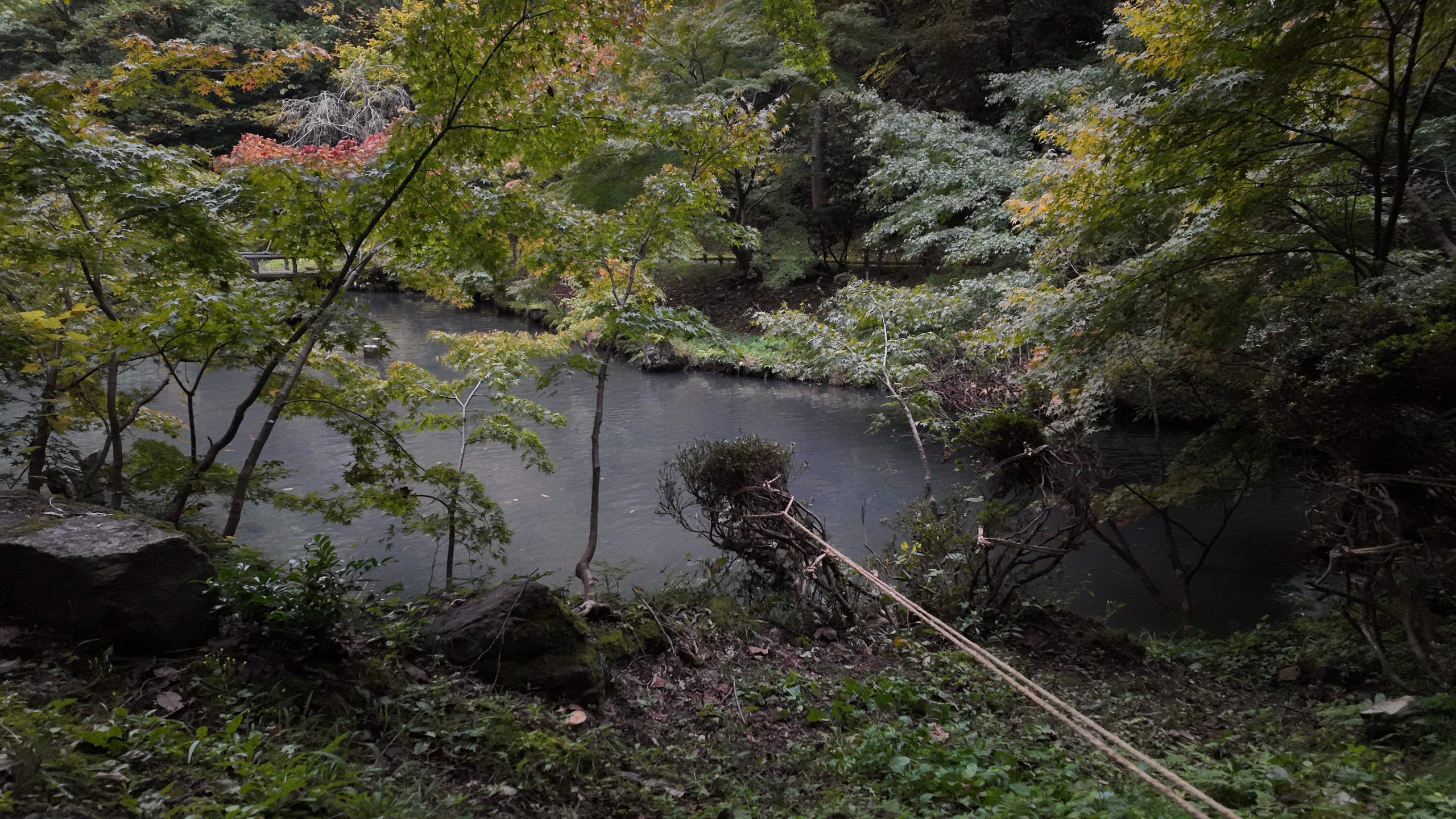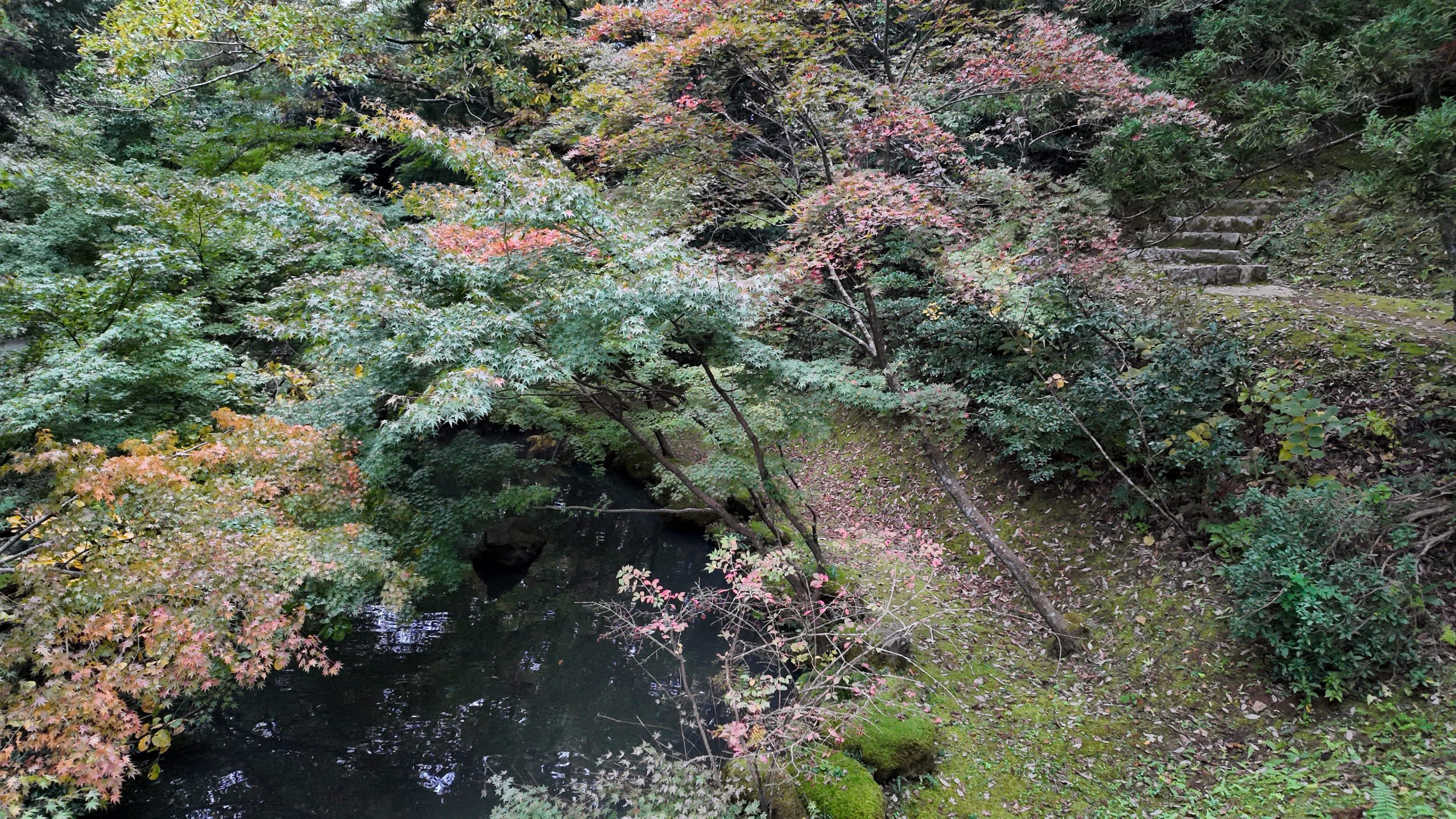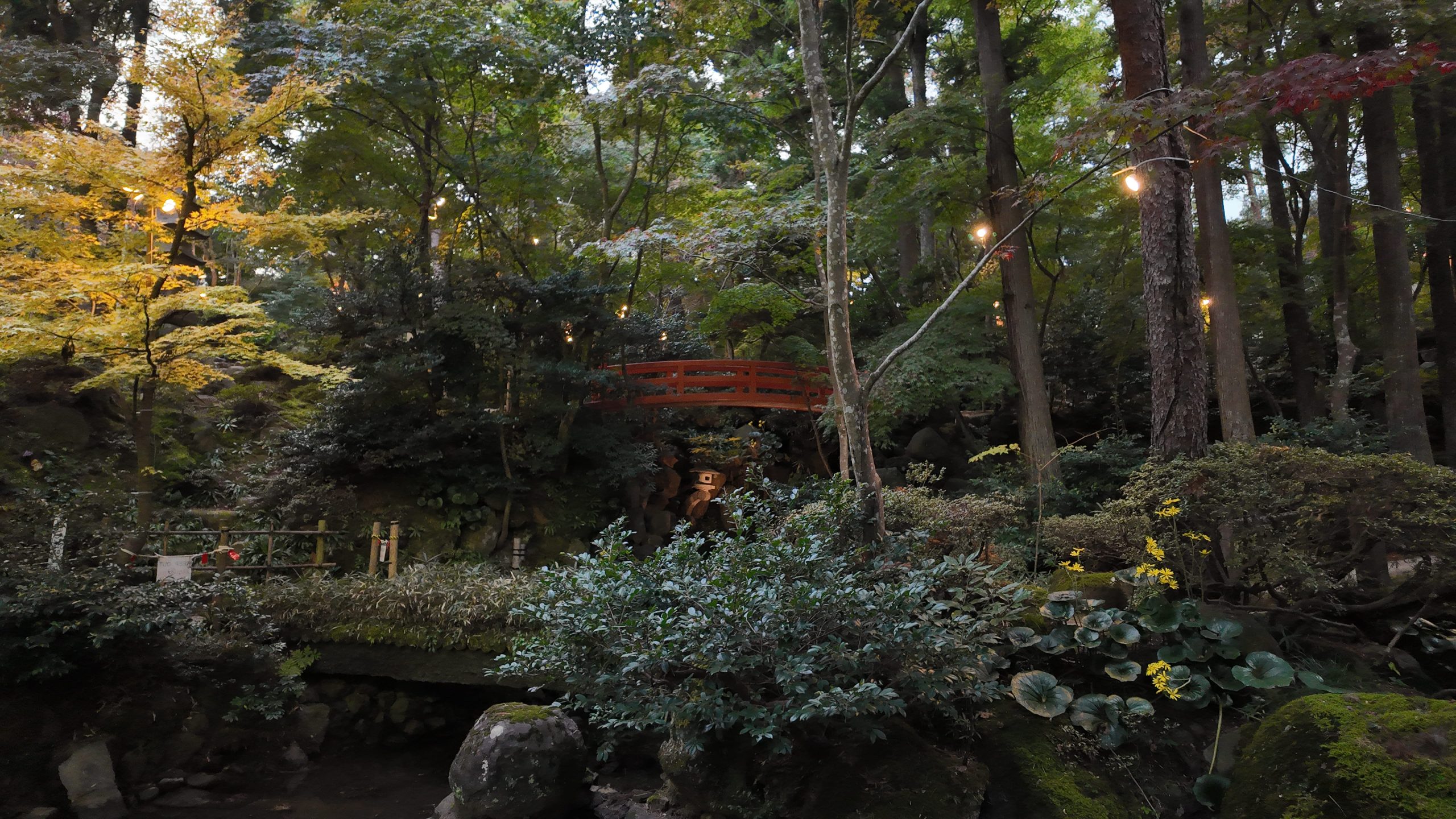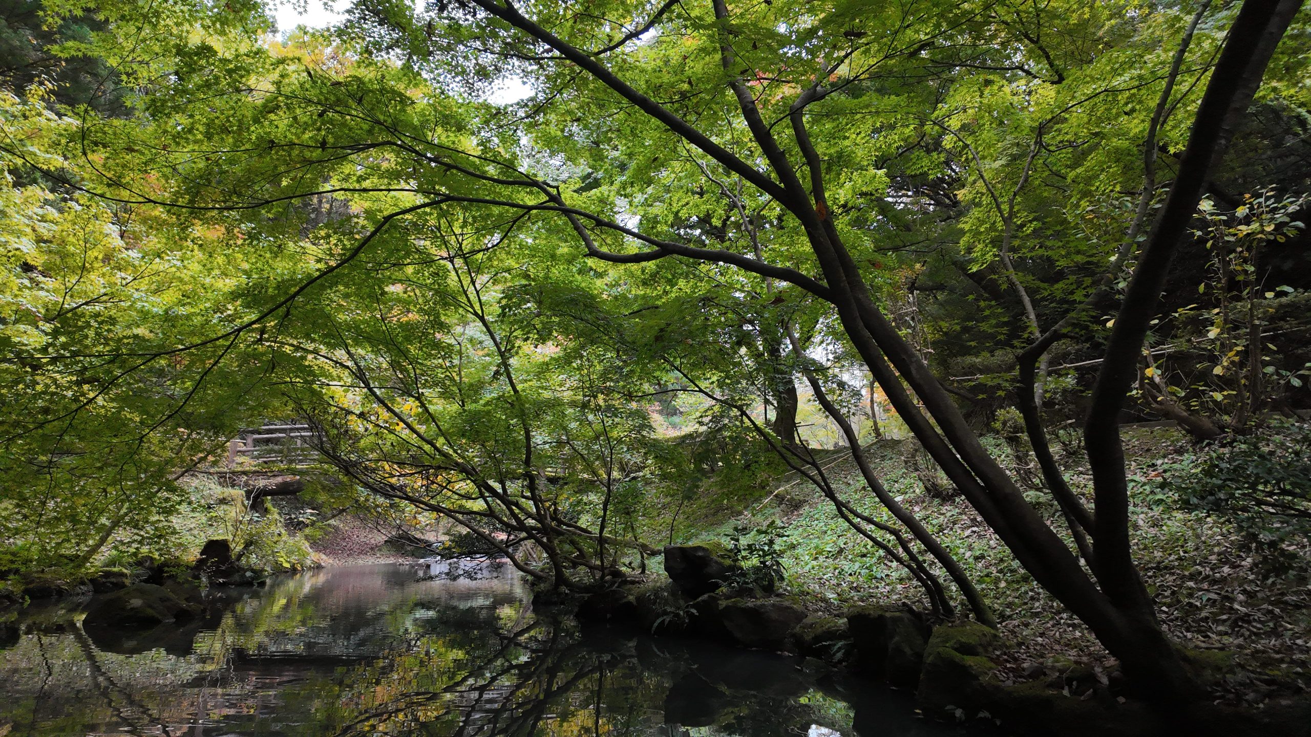池や紅葉を見ながら道なりに進むと左側に太鼓橋がありました。