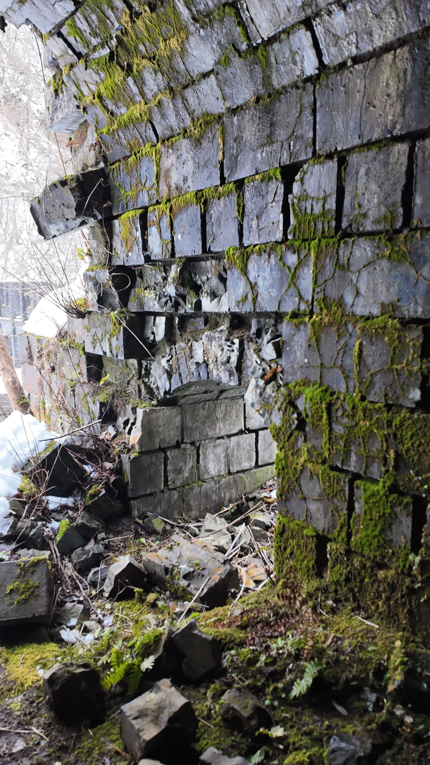 事務所跡はからみ煉瓦を使い建てられたそうで、鉄分を含んでいるため近くで見ると煌めいているのが分かります。