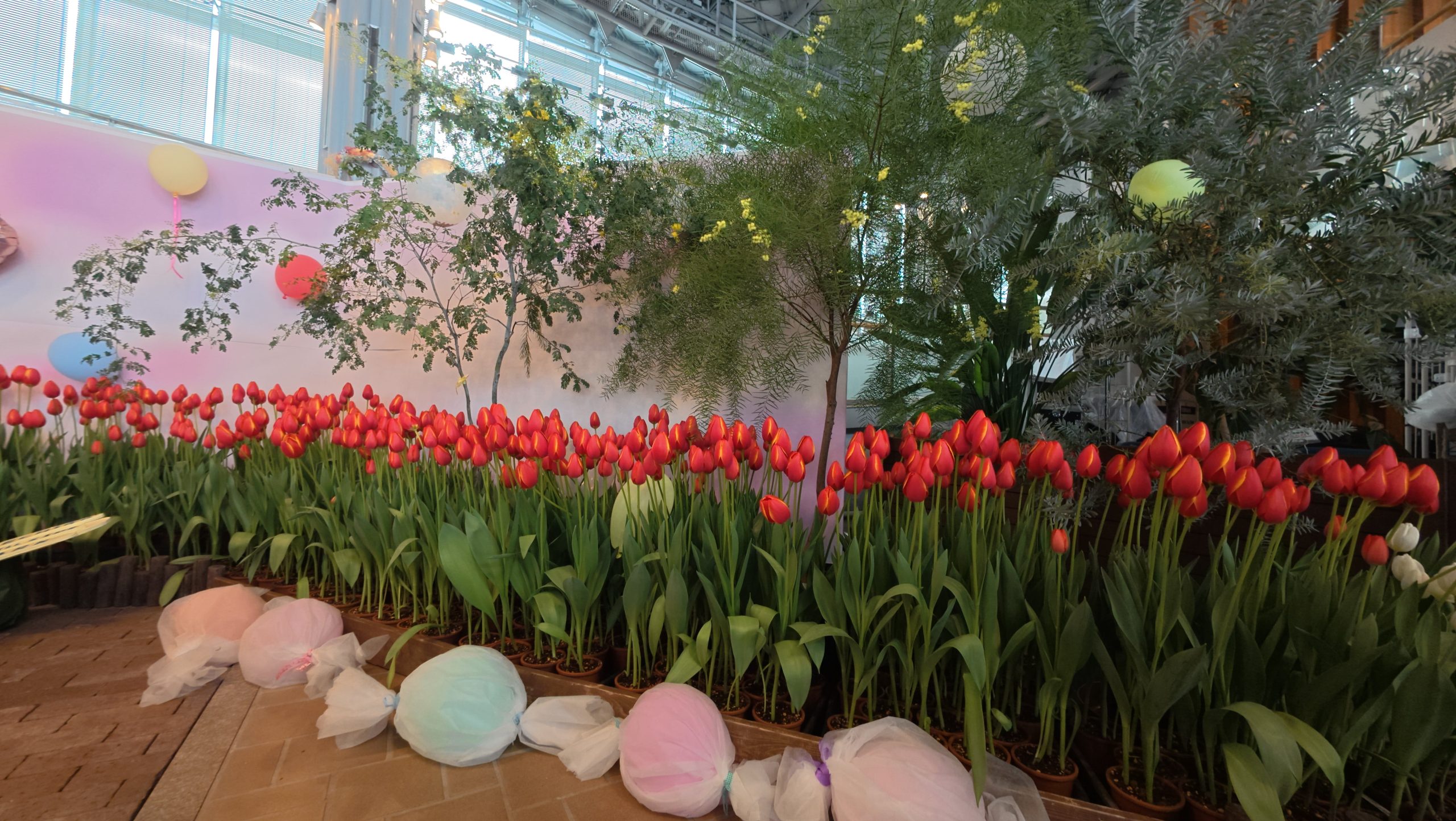 アイスチューリップ展は2025年1月18日~2月7日までで、総数4500本の開花時期を調節したアイスチューリップが展示されていました。