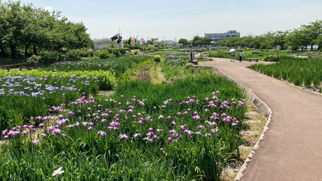 2024年初夏の瓢湖水きん公園内のあやめ園。