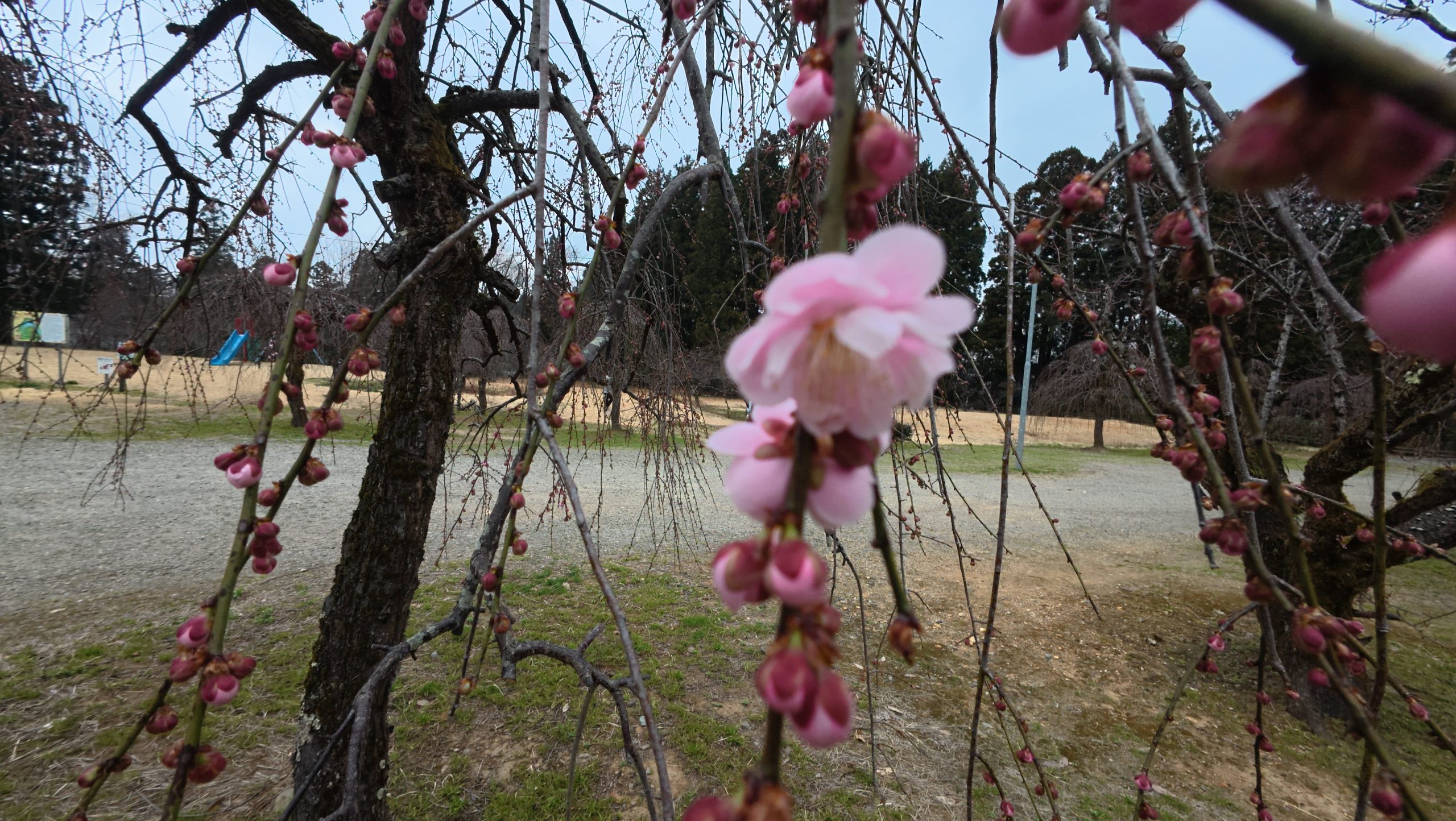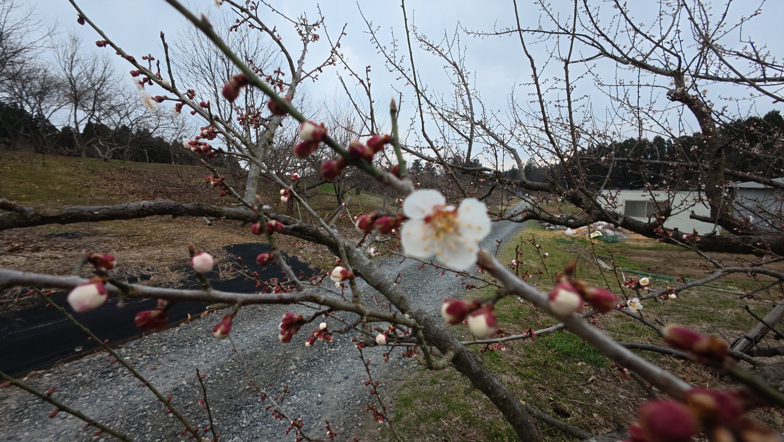 まずは梅の写真から。春の装いを見せていますが2割咲きといったところ。