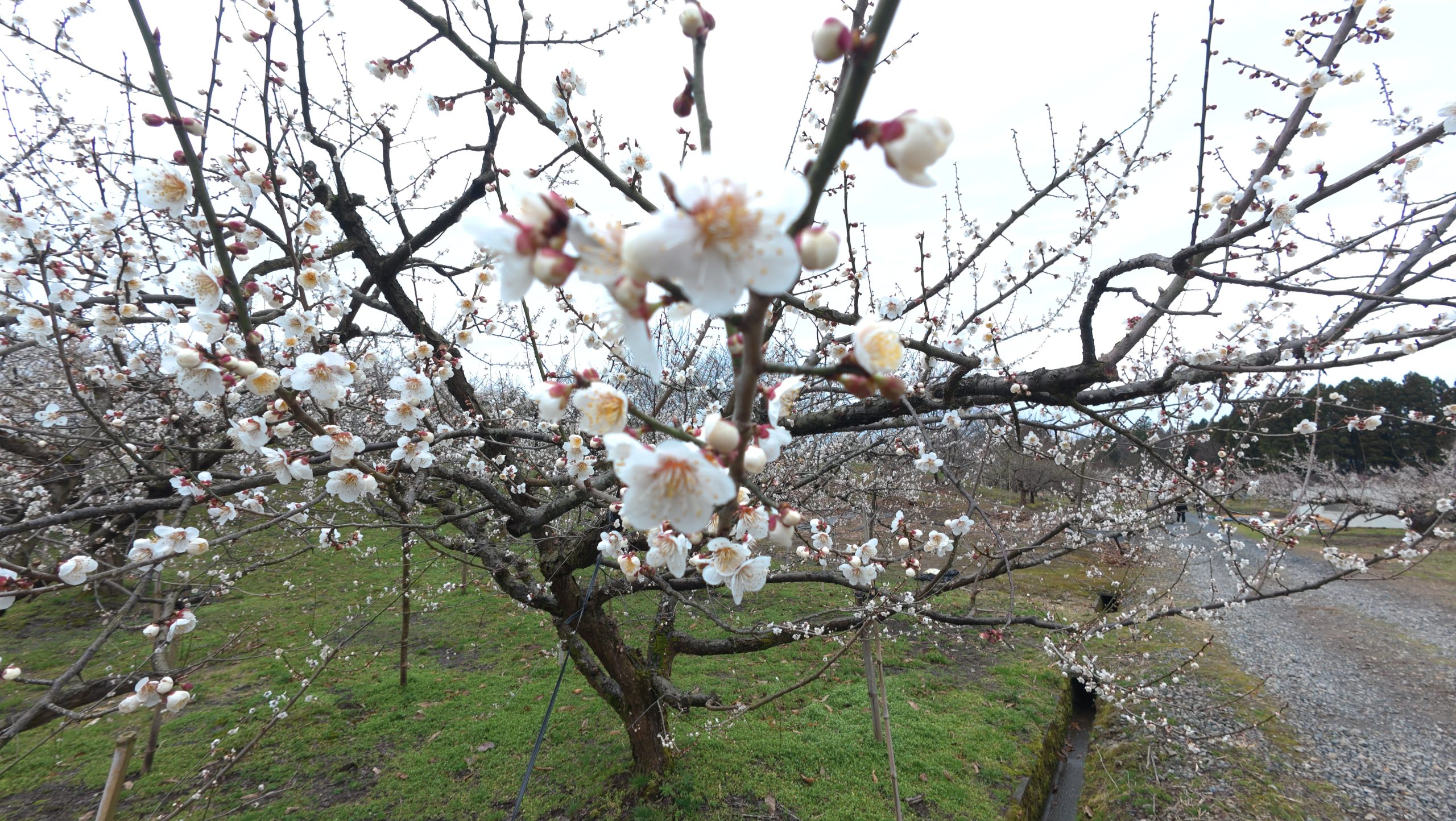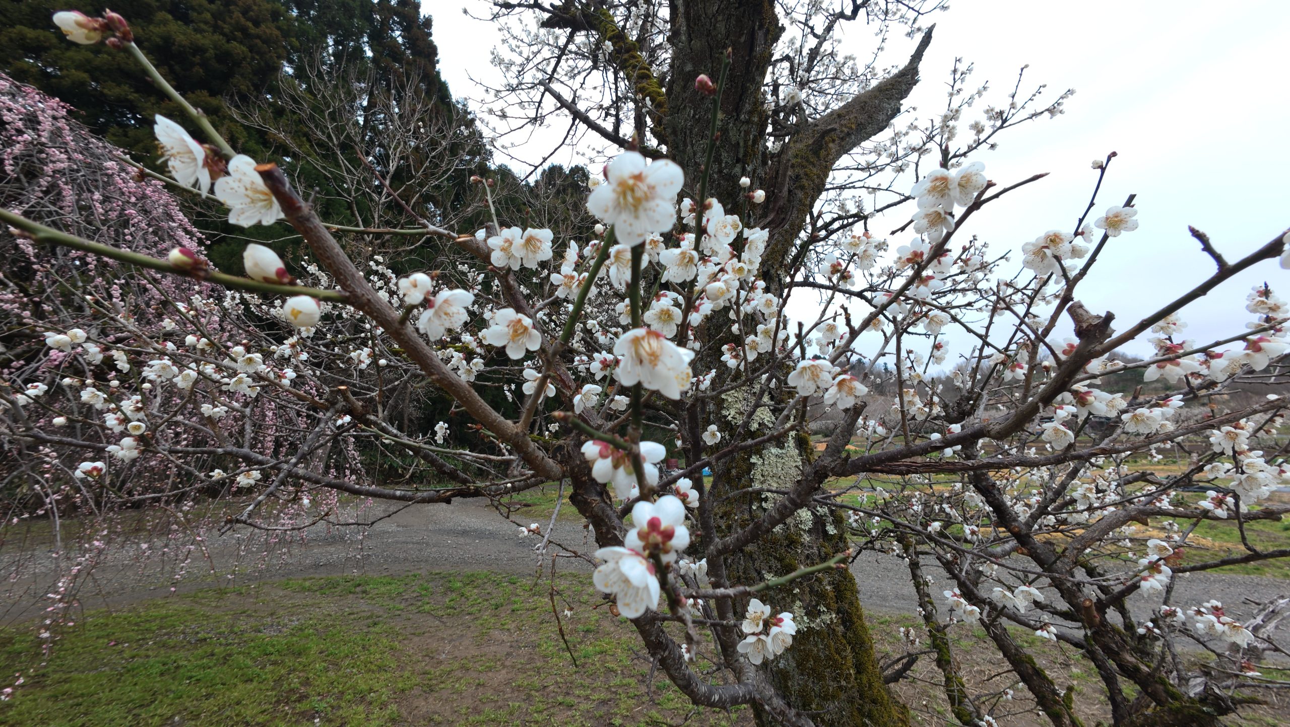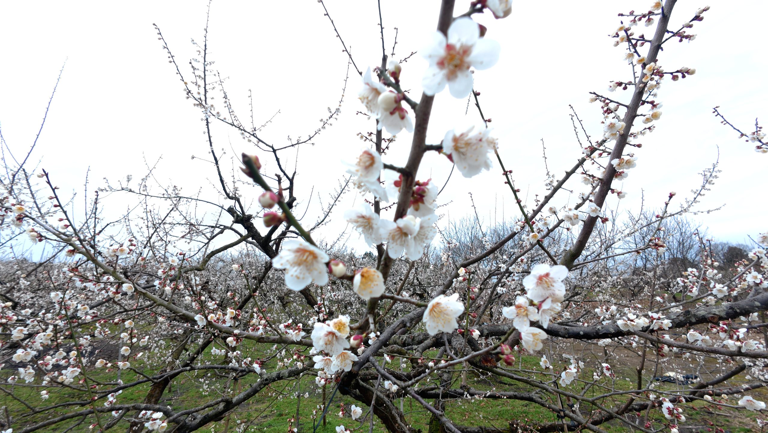 田上町が誇るブランド梅「越の梅」を筆頭に、白梅、紅梅、枝垂れ梅などが春を告げています。