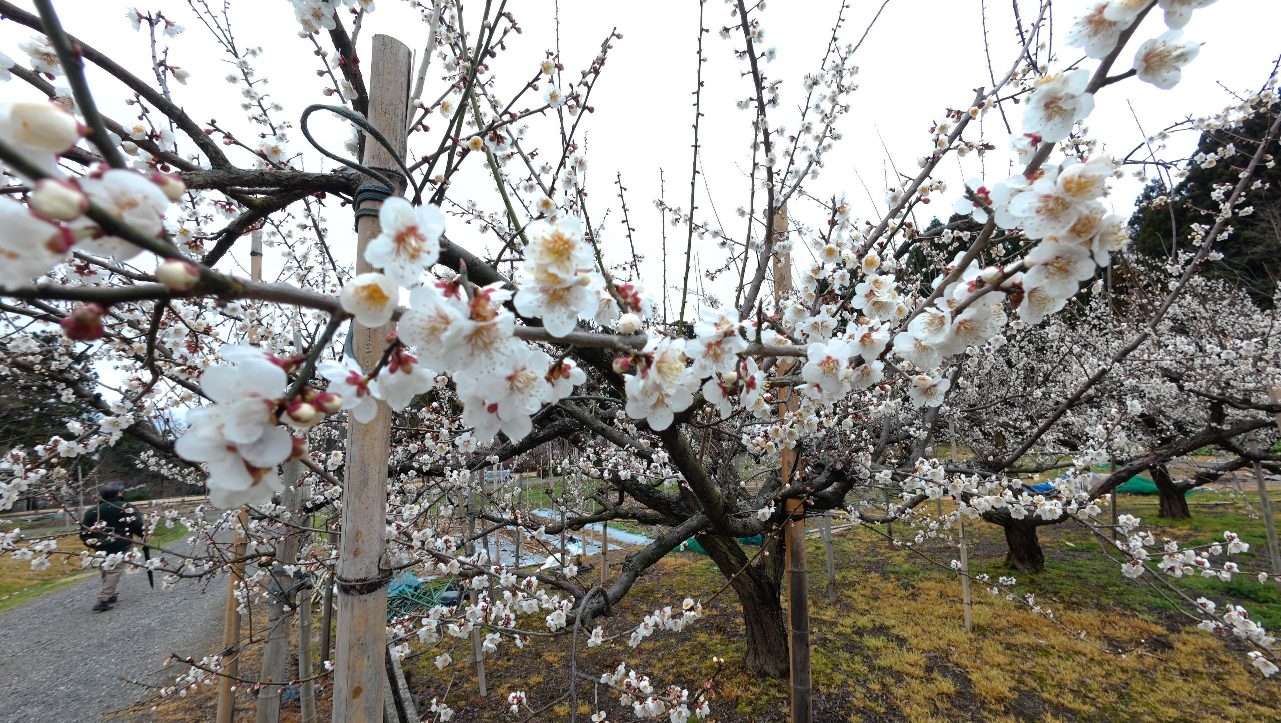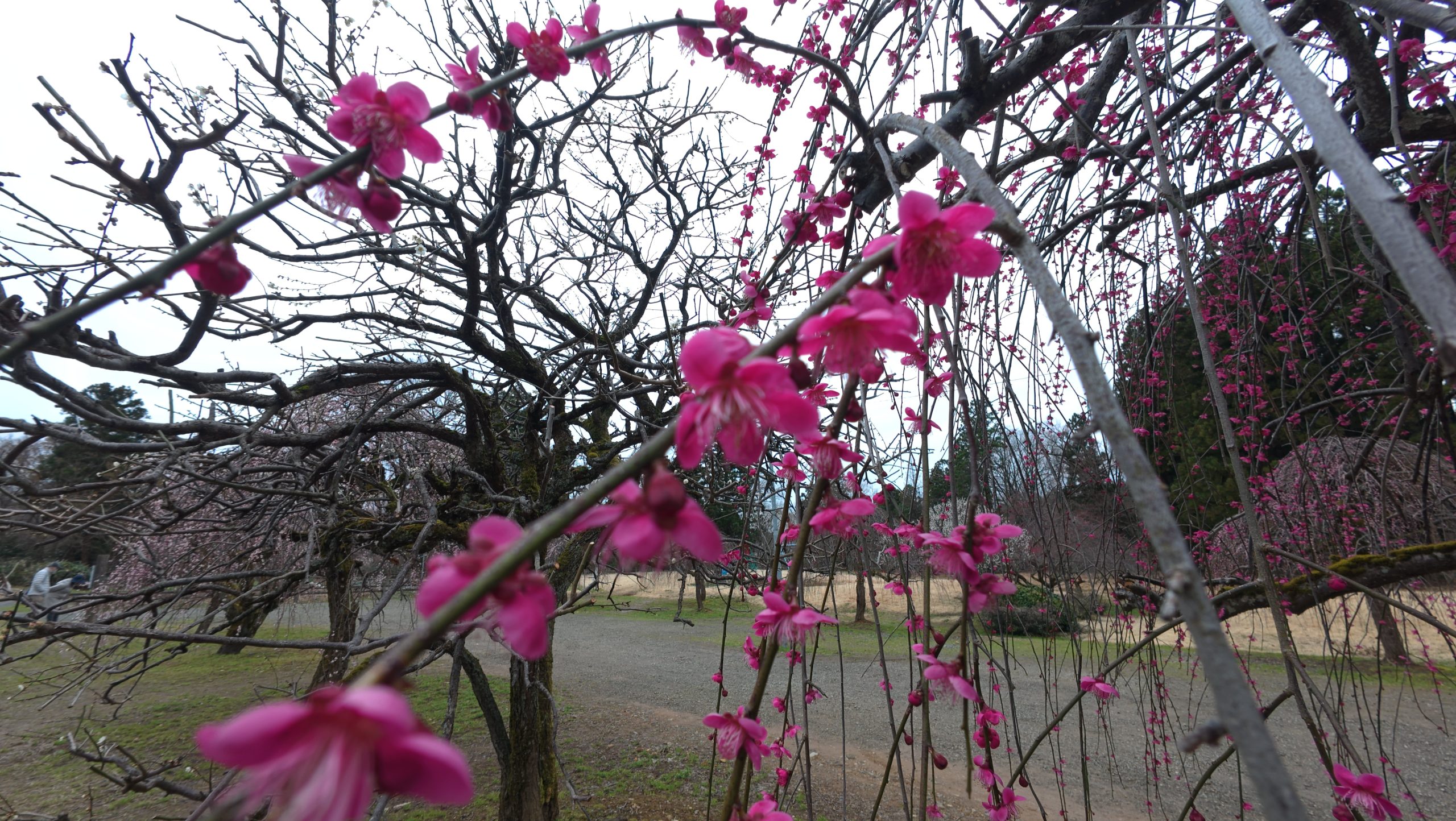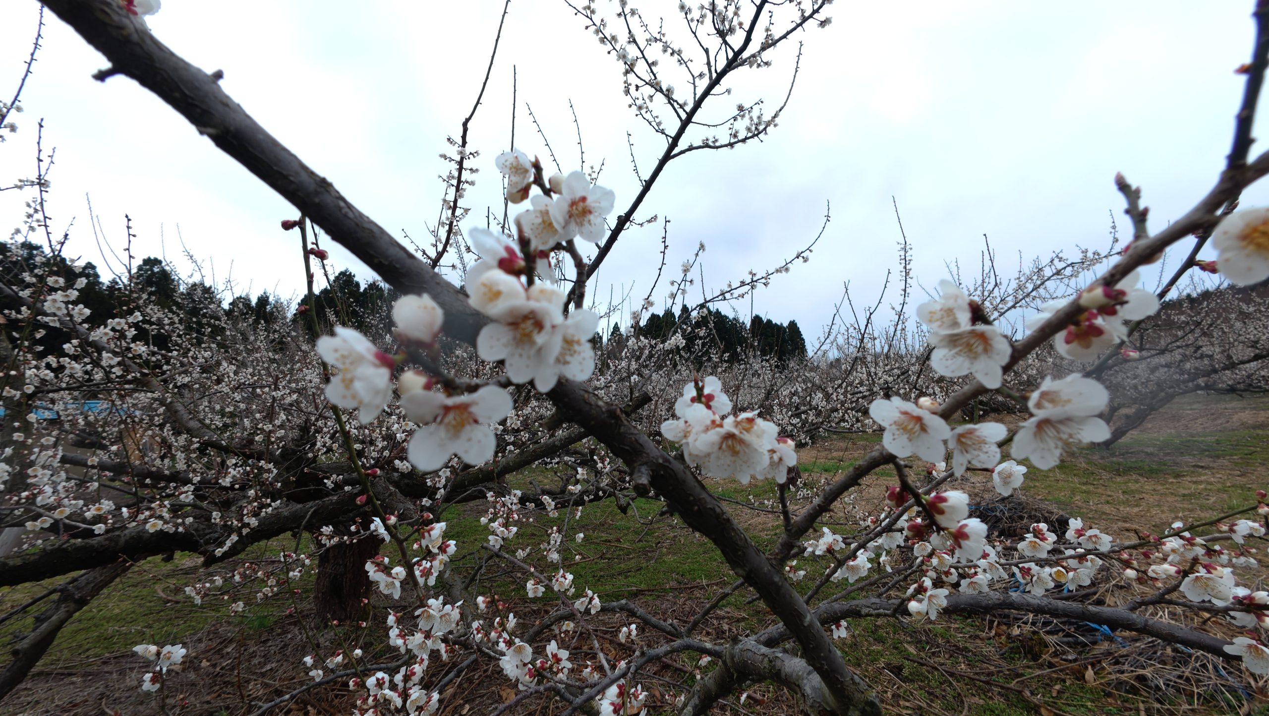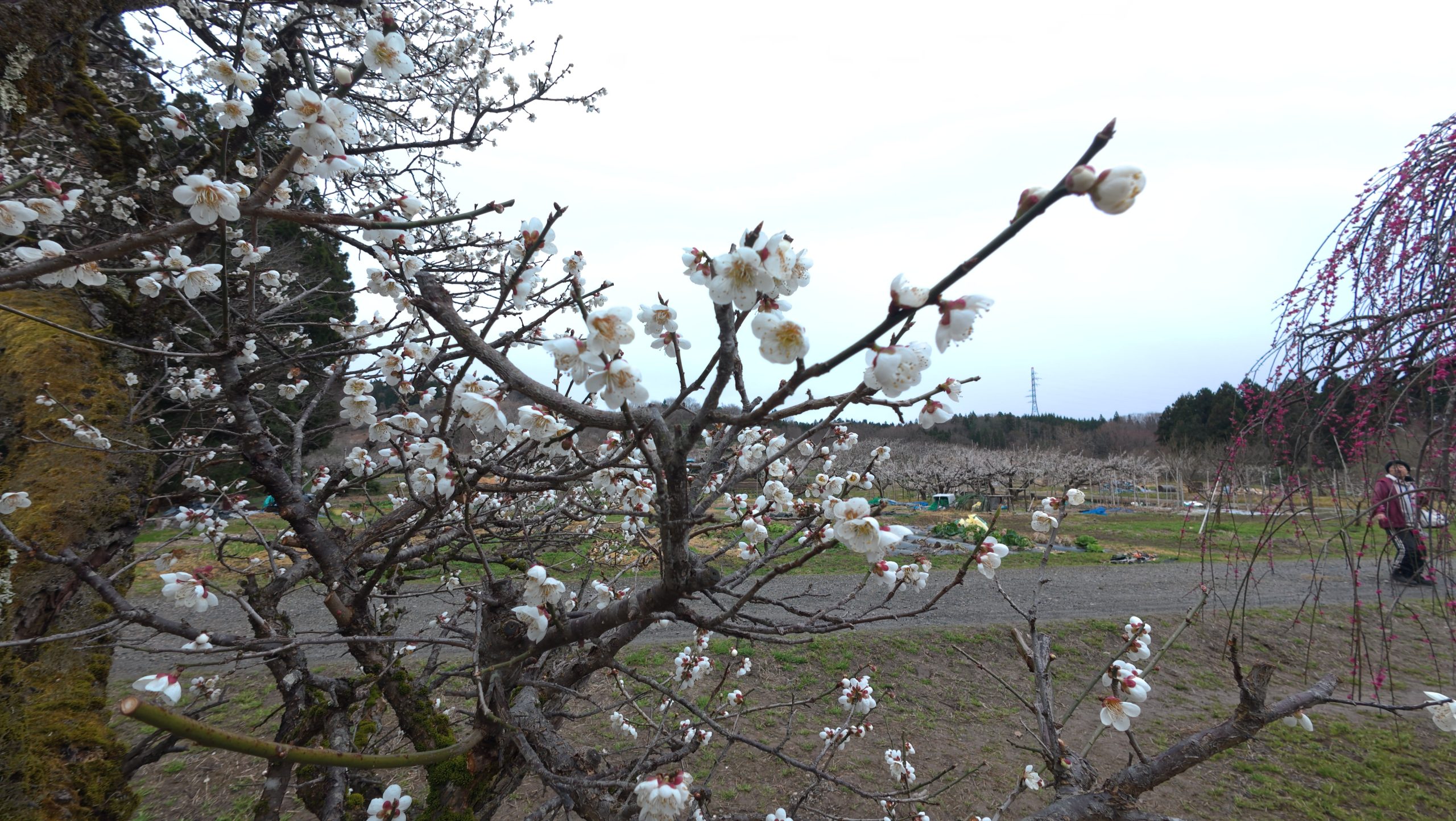 田上町が誇るブランド梅「越の梅」を筆頭に、白梅、紅梅、枝垂れ梅などが春を告げています。