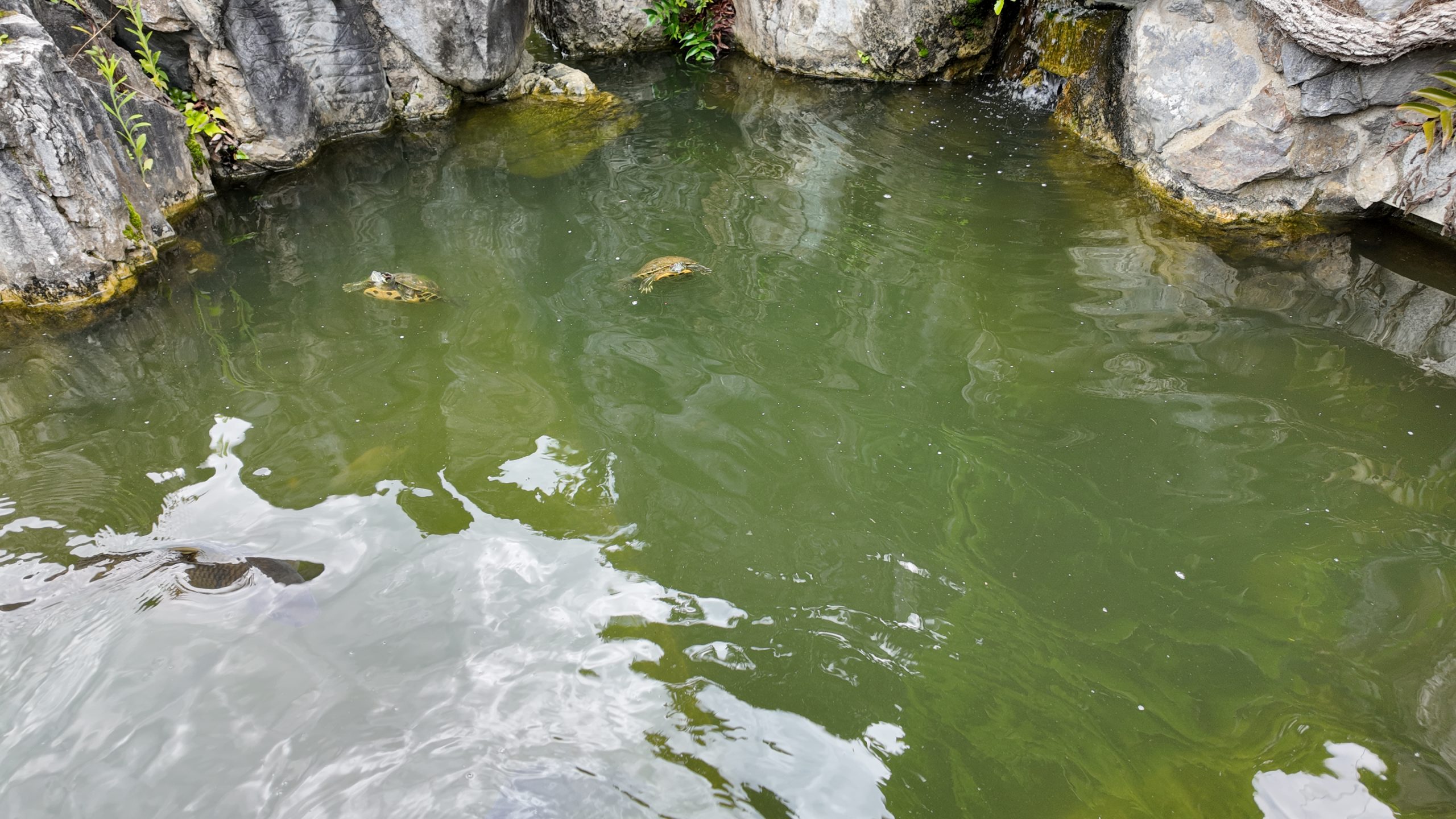 I kept on walking and then found a gorgeous building, the name of which is Fugyokudou. In the pond of its courtyard, some tortoises and carp were swimming 😀