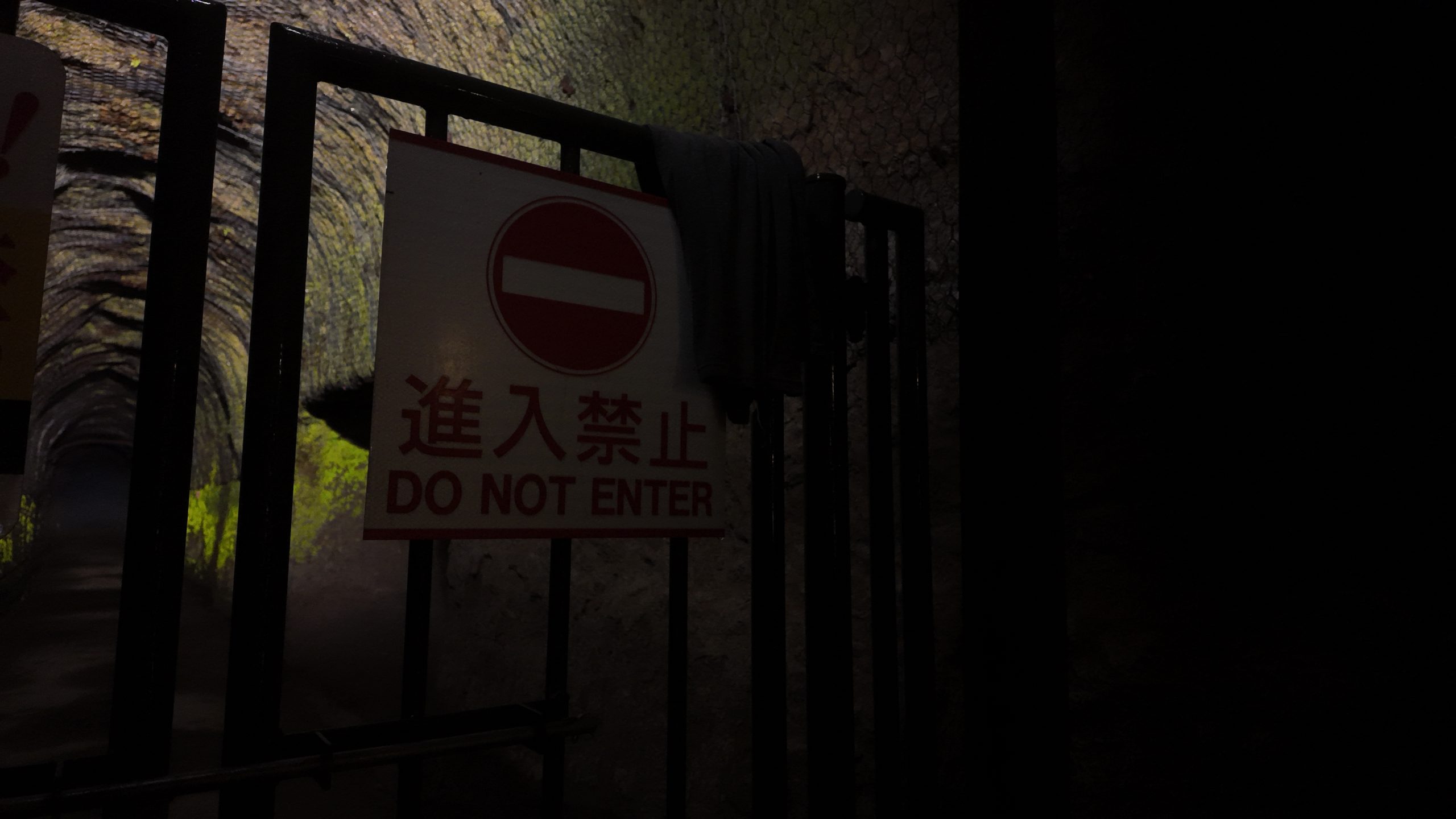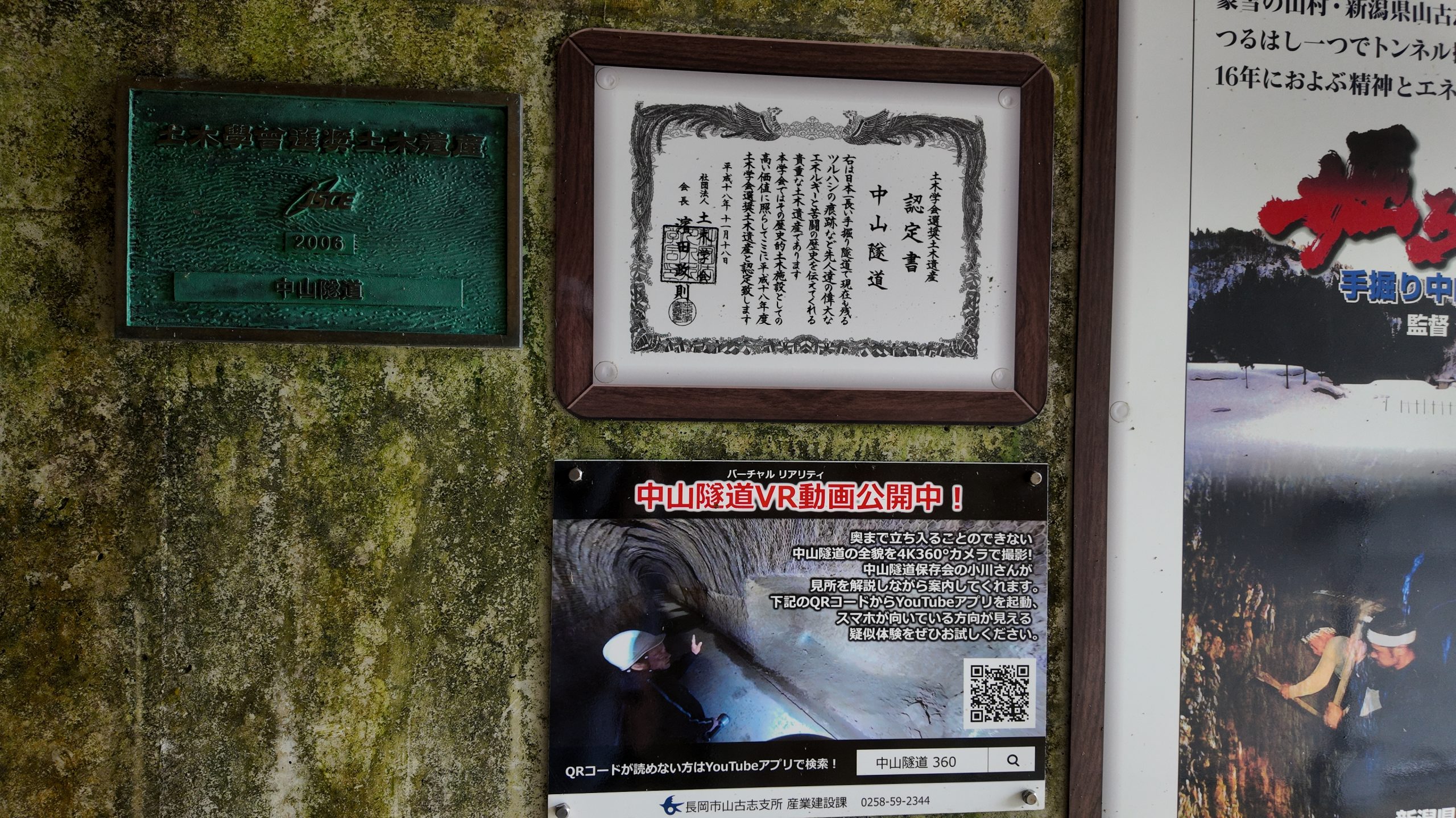 And then to the inside of the tunnel. On the left side, there was a form that visitors fill out, and signs about Nakayama Tunnel on the right side.