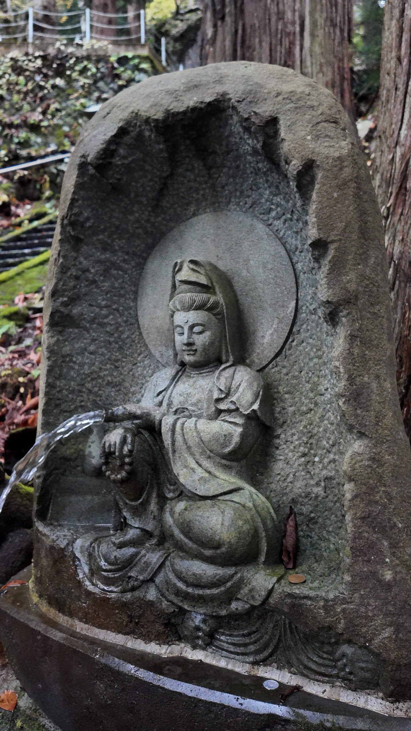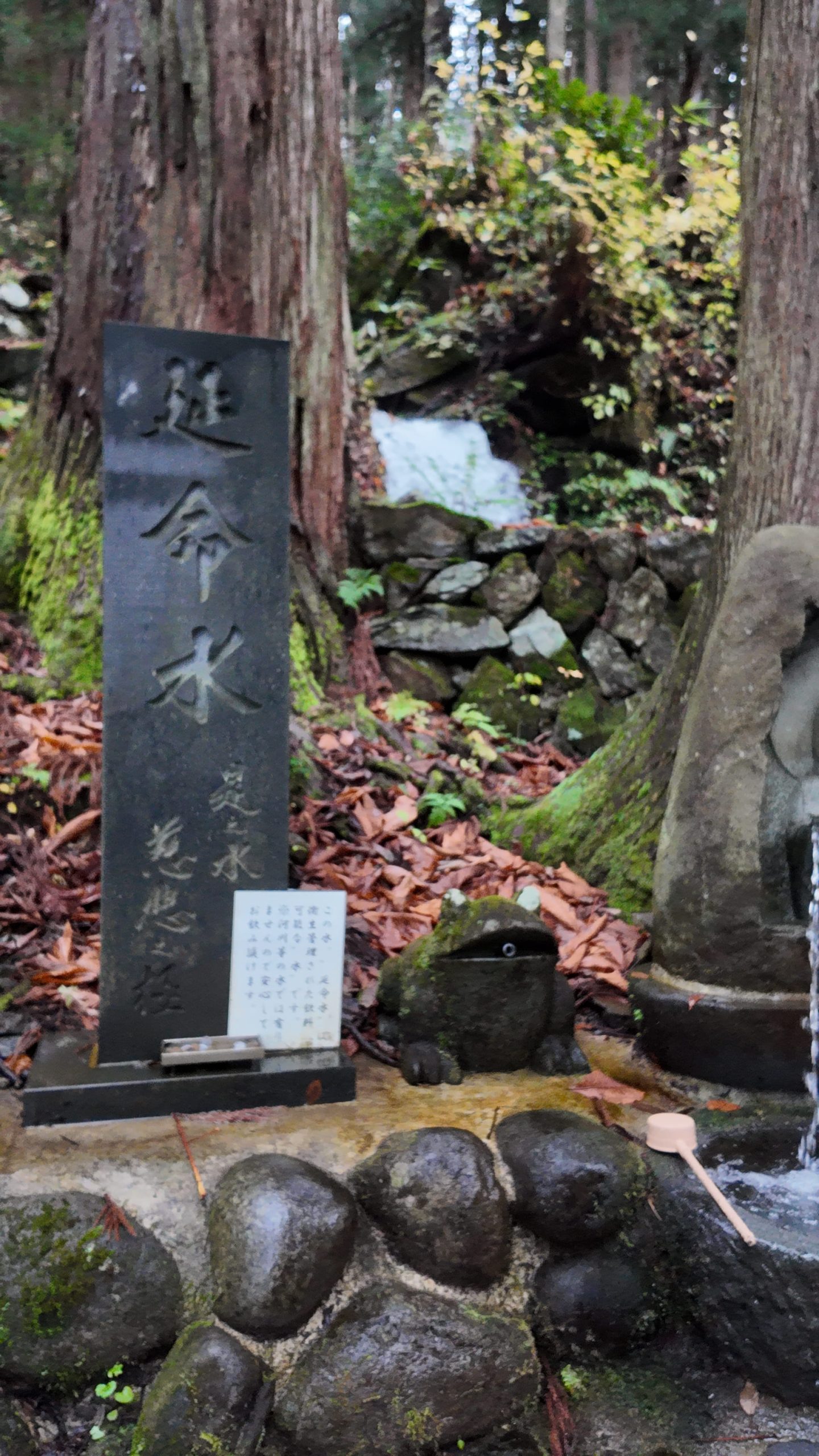Going through the gate and walking up the stone stairs a little, you will see Life-extention Water on your right, where you could quench your thirst.