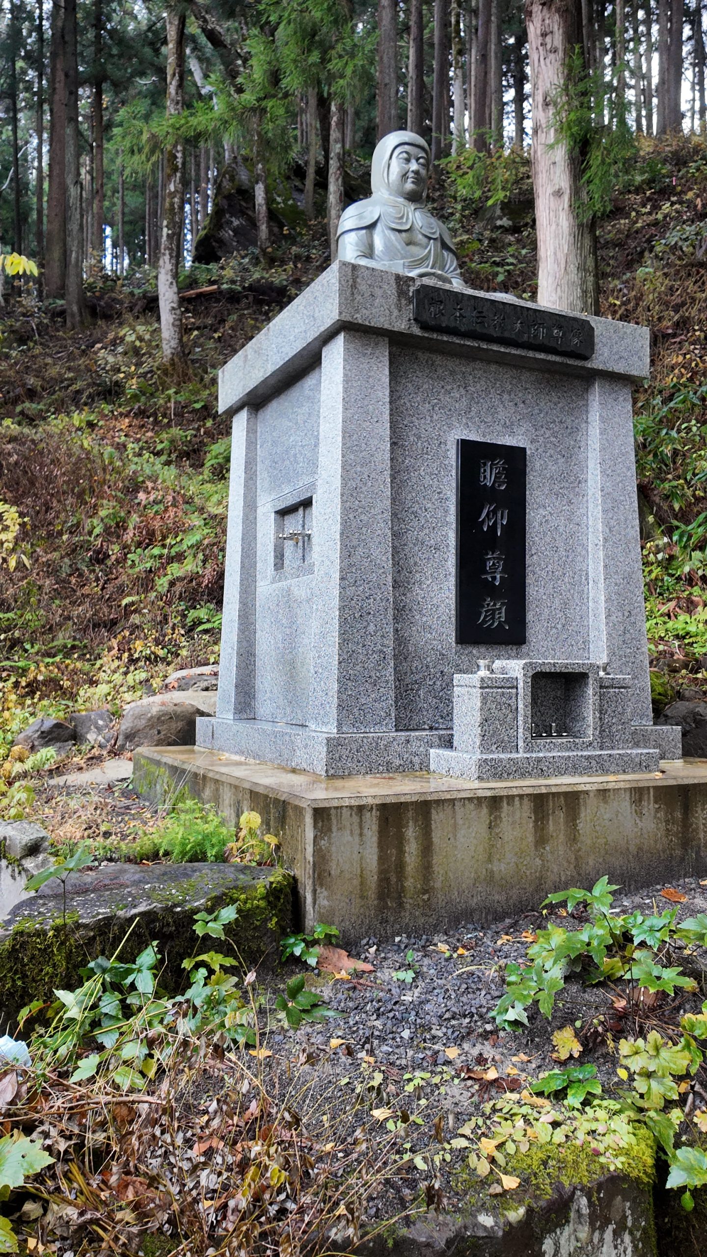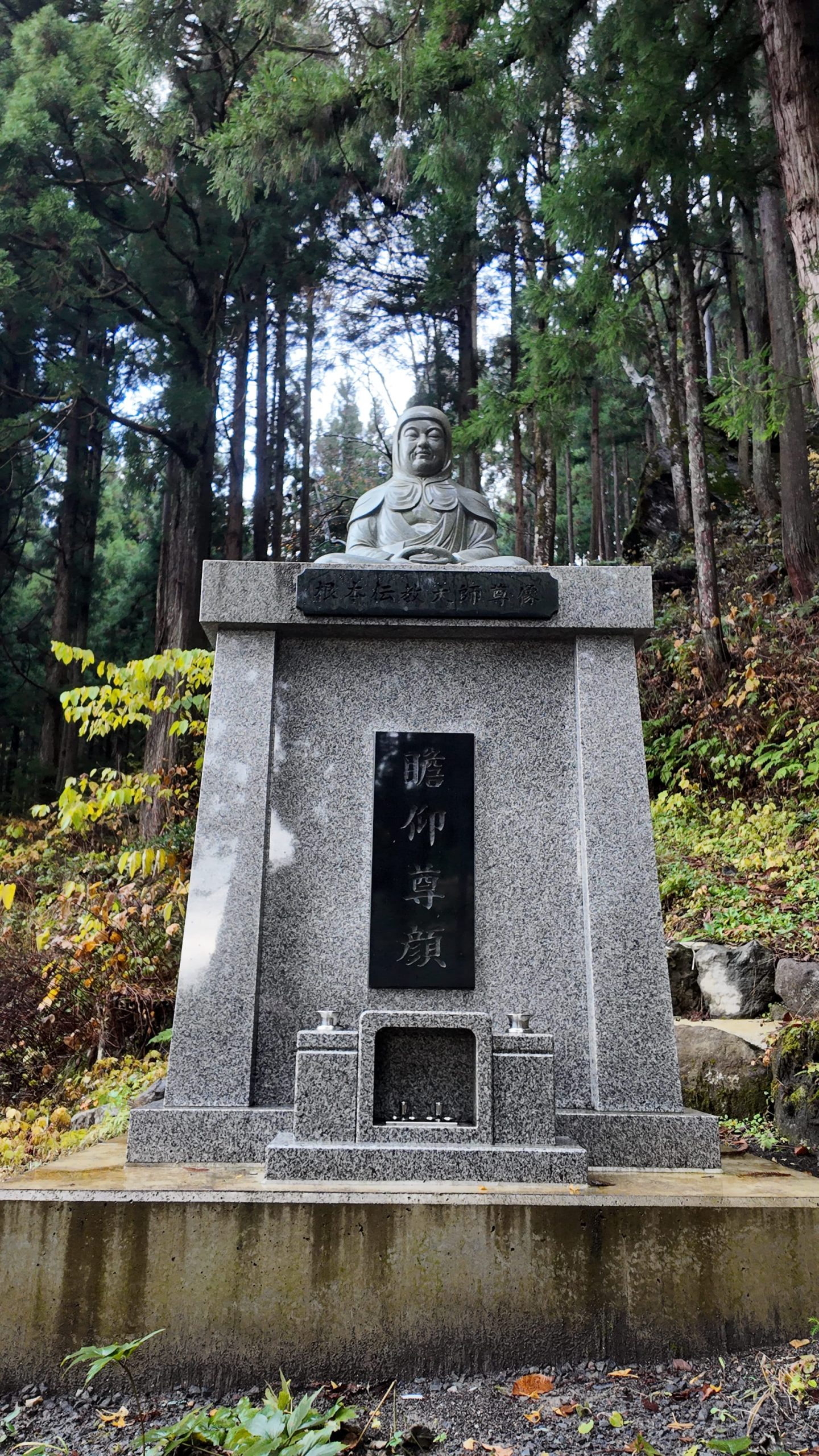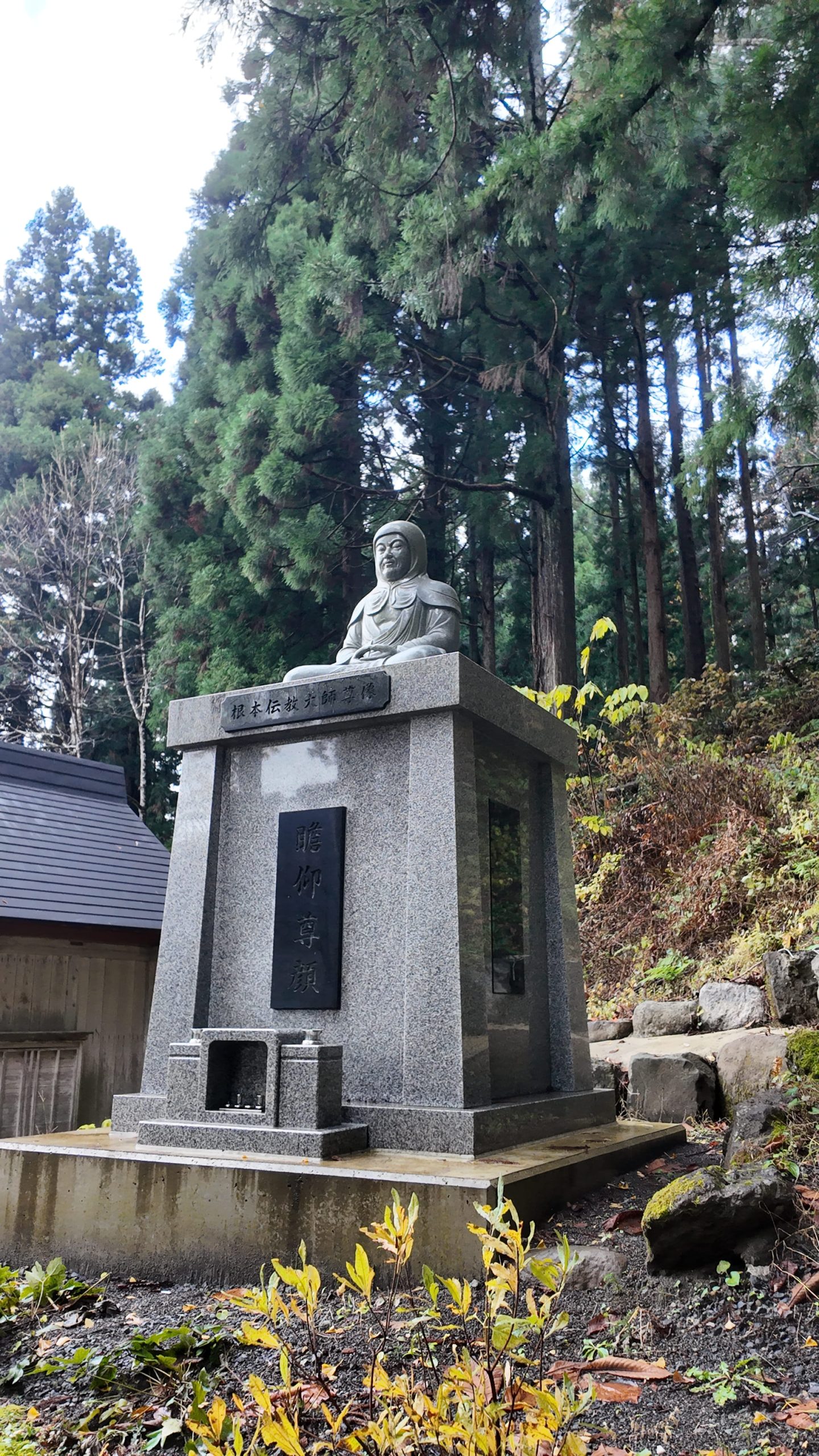 Here is the statue of Konpon Dengyō Daishi set up next to Daikokuden Hall.